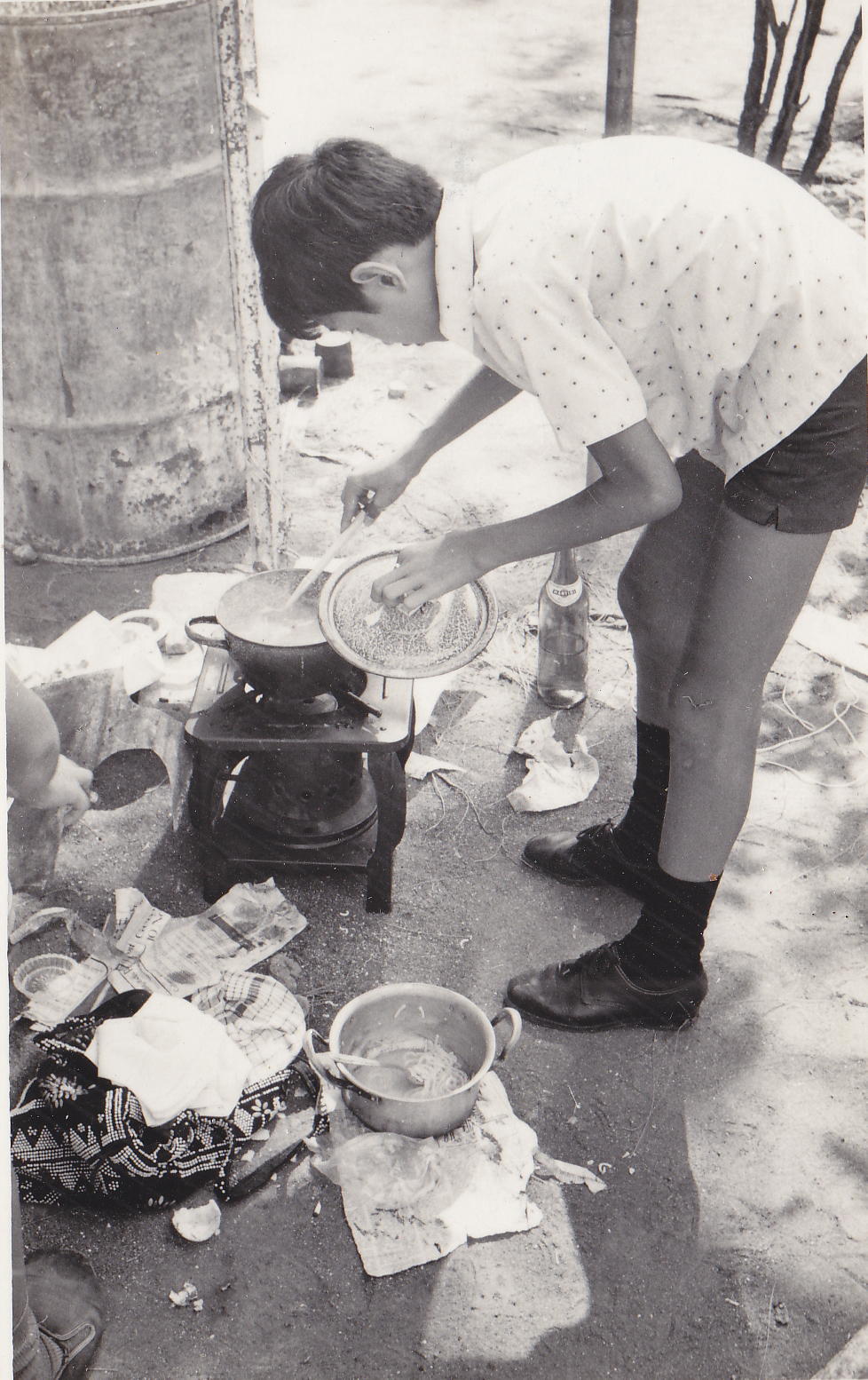 Seorang anak dari Panti Asuhan Don Boco waktu mengikuti praktek ujian masak di sekolah, tahun 1977.