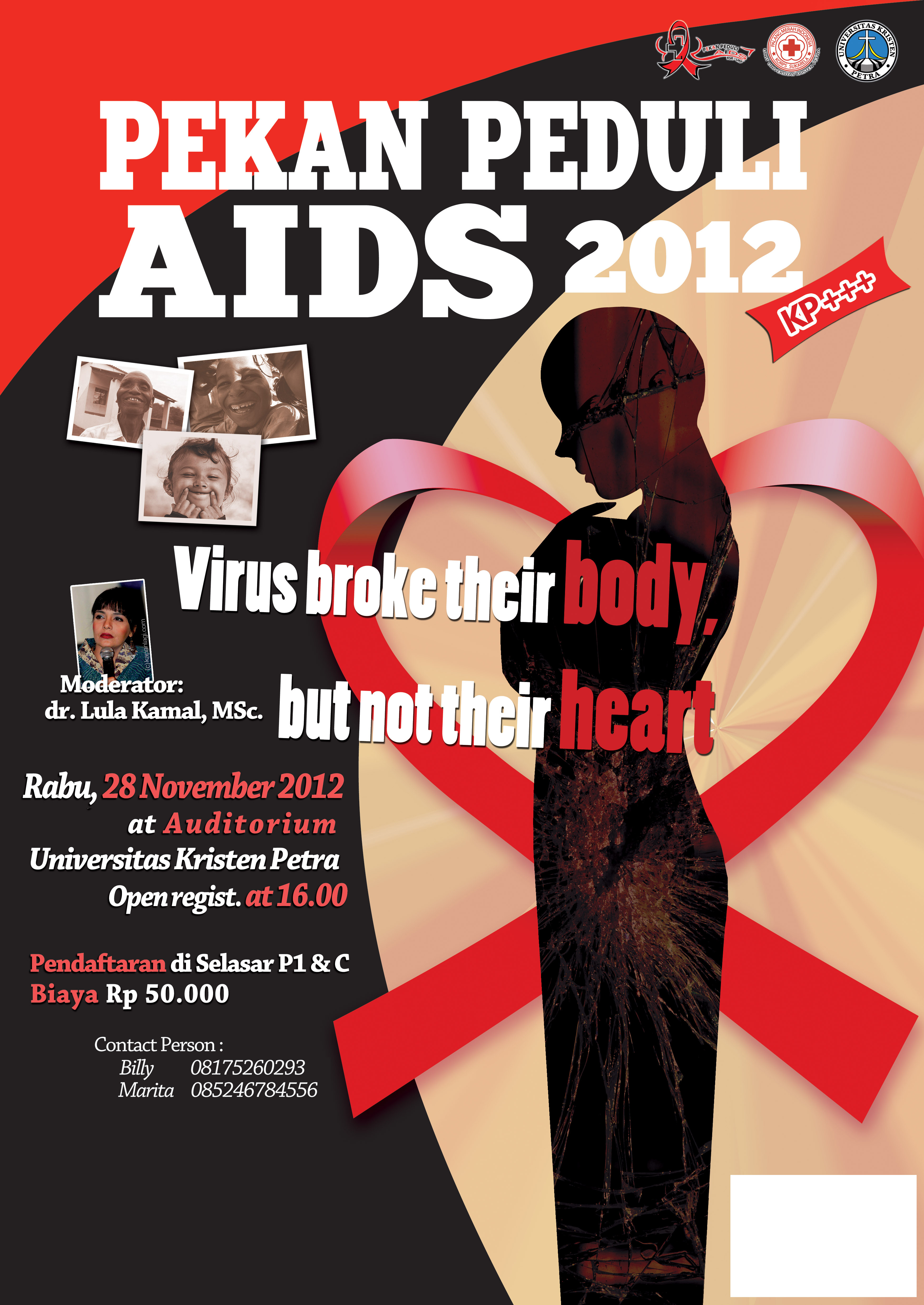 Pekan Peduli AIDS 2012 diadakan pada tanggal 28 November 2012 bertempat di Auditorium Universitas Kristen Petra. Moderator dalam acara kali ini yaitu dr.Lula Kamal,Msc.
