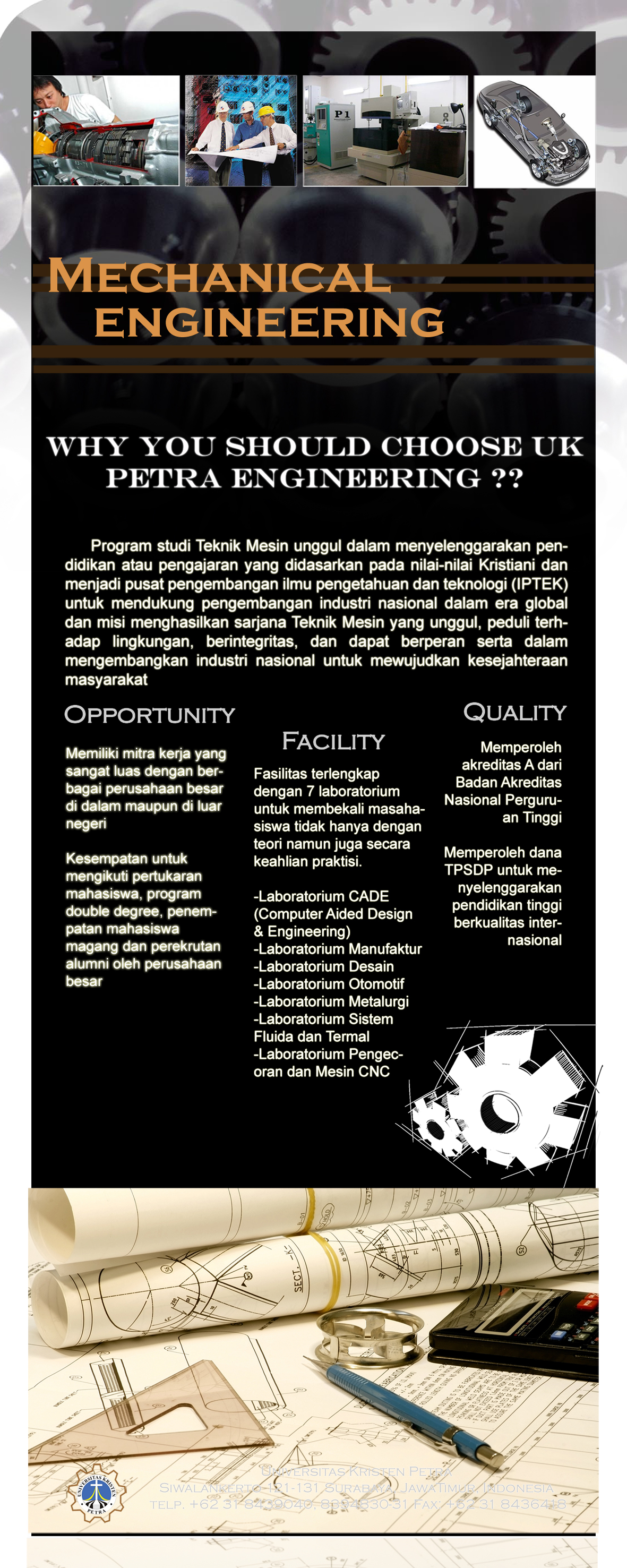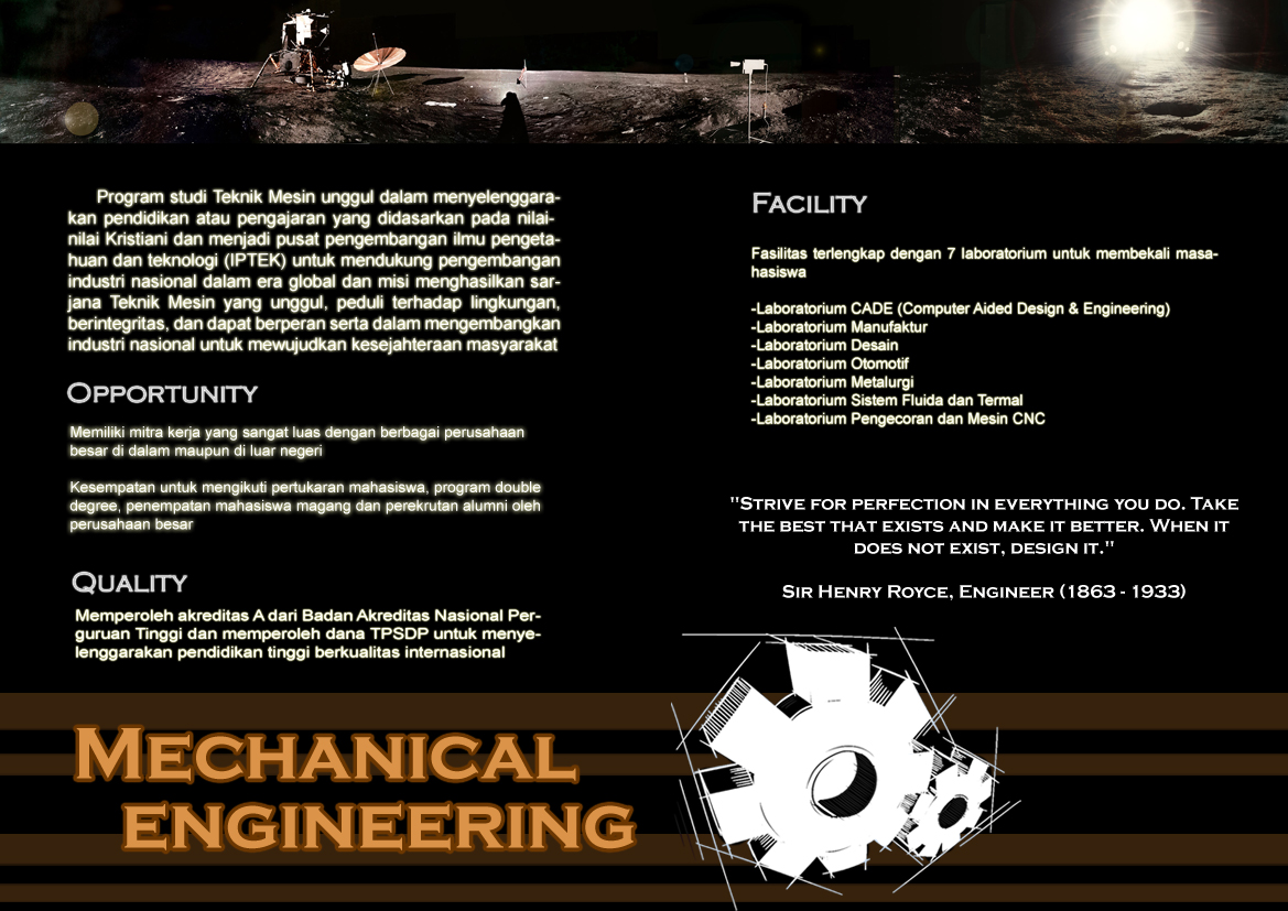 Teknik mesin merupakan salah satu jurusan yang sedikit peminatnya. Penyebabnya ialah masyarakat yang tidak begitu mengerti mengenai teknik mesin seperti apa saja yang diajarkan, bagaimana peluang dan kelebihan yang dimiliki oleh teknik mesin. Padahal tenaga kerja di bidang teknik mesin di Indonesia masih sangat kurang. Sehingga diperlukan suatu bentuk promosi untuk mengingatkan kembali masyarakat terhadap teknik mesin.