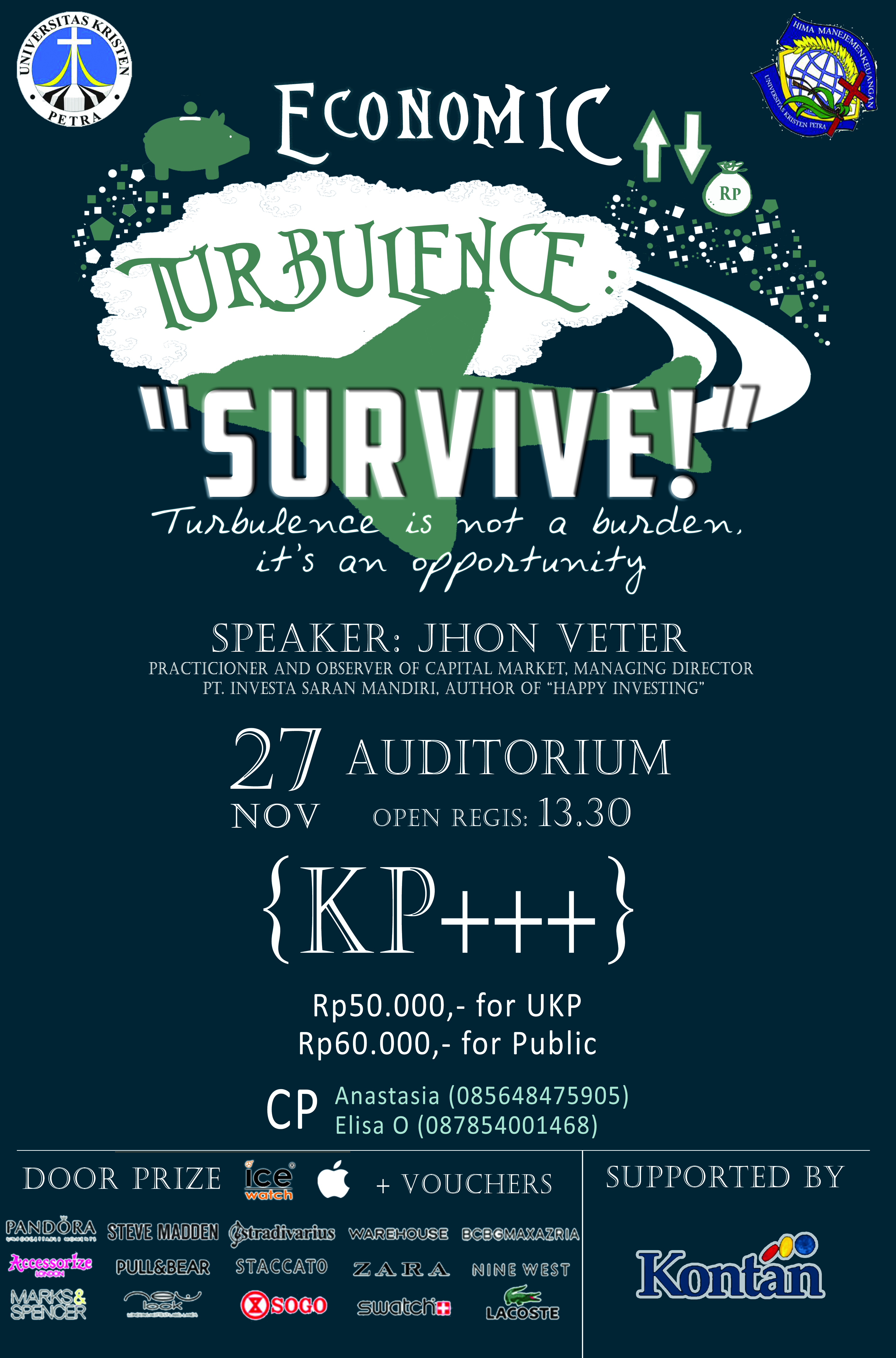Program Manajemen Keuangan UK. Petra mengadakan seminar nasional bertema Economic Turbulence: Survive. acara ini diadakan pada tanggal 27 Nopember 2013 di Auditorium UK. Petra pada pukul 13.30. Acara ini dibuka untuk umum dengan biaya sebesar Rp 60.000,00 , sedangkan untuk mahasiswa UK. Petra dikenakan biaya sebesar Rp 50.000. Pembicara dalam acara ini ialah Jhon Veter.