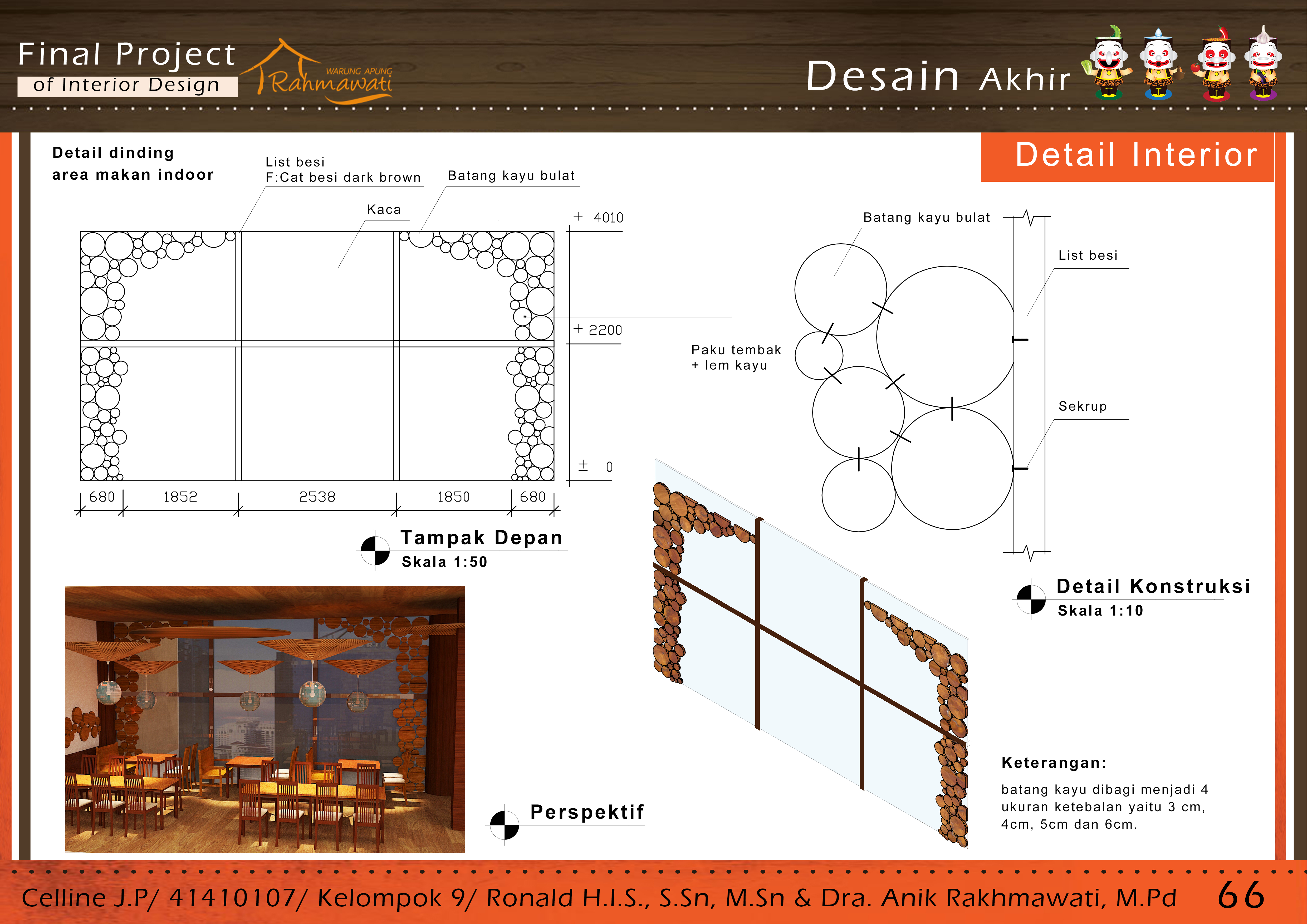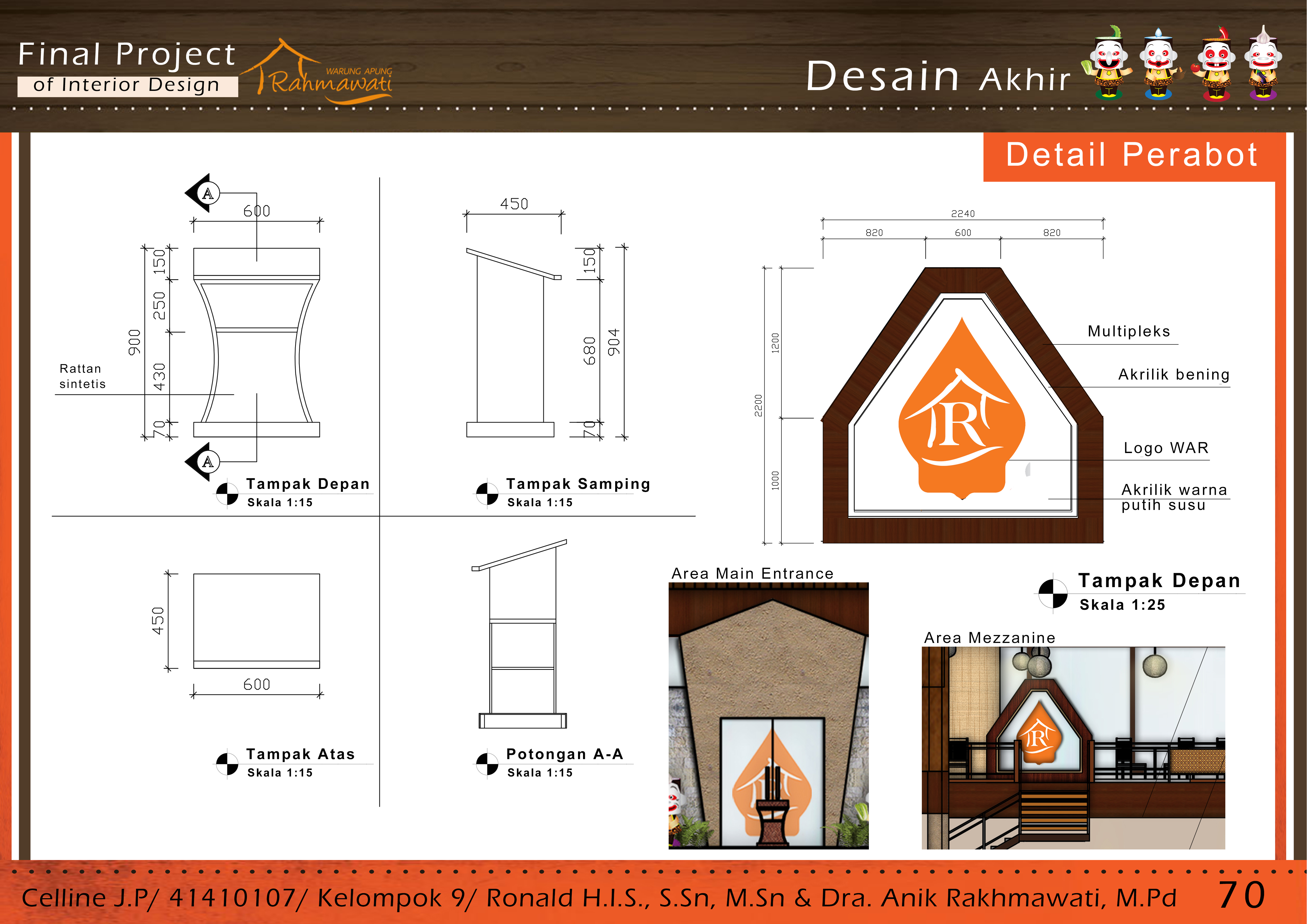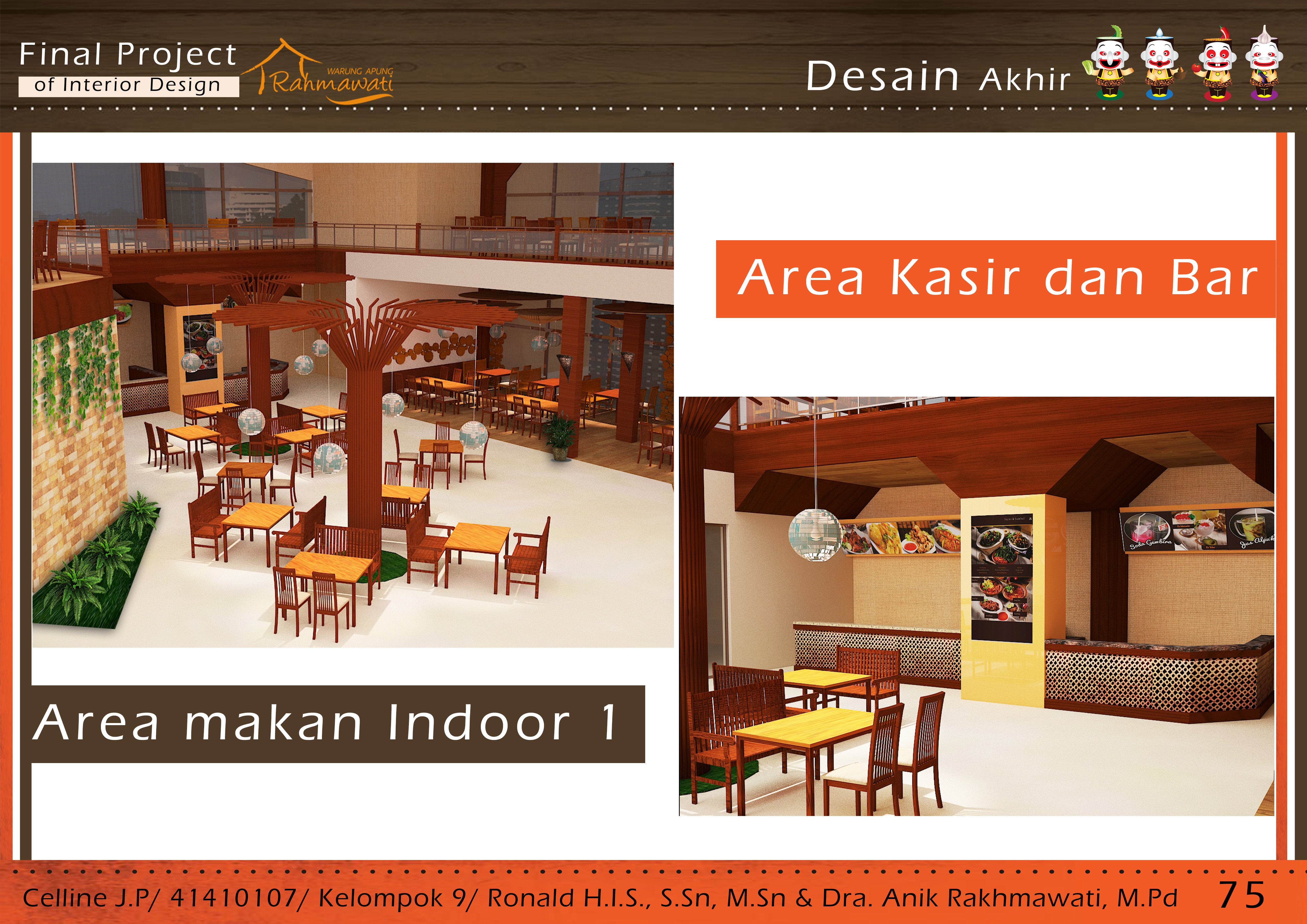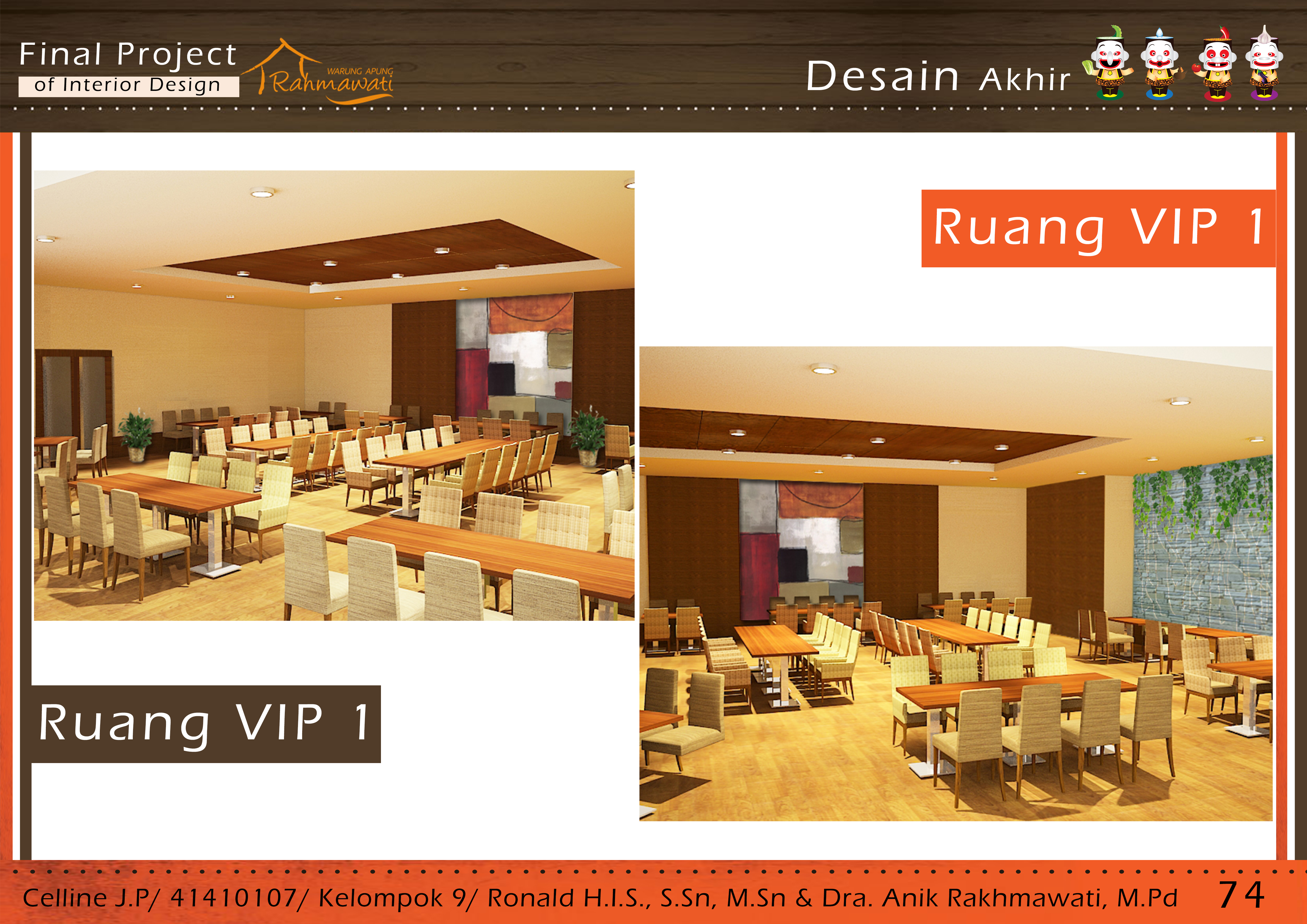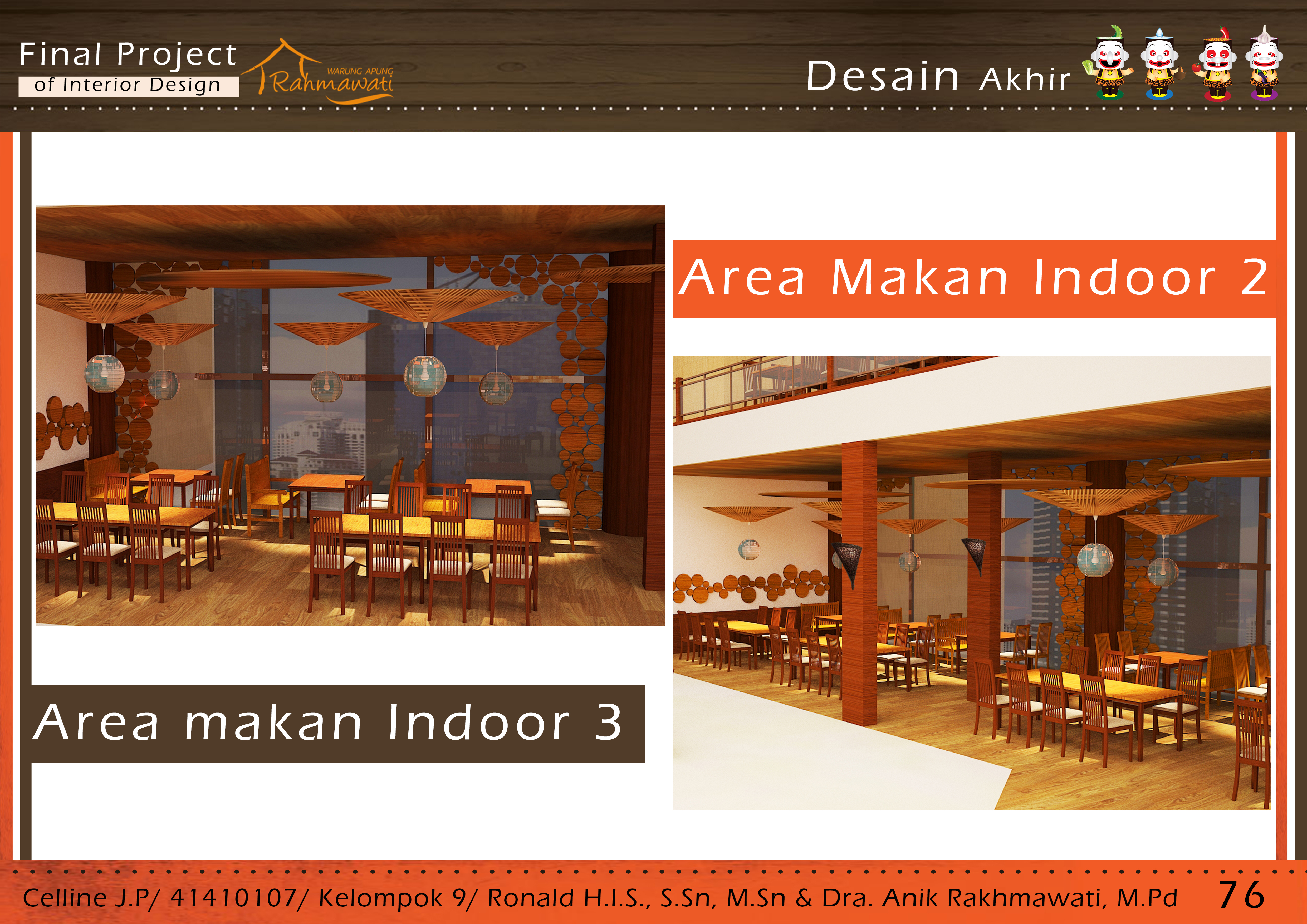 Pesona kuliner di Surabaya berkembang baik dan tidak kalah menarik dengan kota lain. Restoran berkonsep budaya tradisional dan modern banyak didirikan, salah satunya adalah restoran Warung Apung Rahmawati. Restoran tersebut semakin berkembang dan cukup sukses menambah jumlah gerai kulinernya di beberapa lokasi. Salah satu permasalahannya adalah desain restoran Warung Apung Rahmawati tidak dibangun berdasarkan branding yang terkonsep. Desain branding baru sebagai dasar pengembangan desain restoran ini penerapannya masih belum terealisasikan. Oleh karena itu perancangan ini bertujuan untuk membantu menerapkan konsep desain branding yang baru pada segi interiornya. Konsep yang diangkat adalah Punakawan. Konsep diambil untuk mencerminkan karakter utama restoran Warung Apung Rahmawati. Secara visualisasi karakter yang ada pada punakawan diaplikasikan ke dalam elemen interior maupun dekoratifnya. Dengan konsep branding yang baru ini diharapkan tidak hanya membentuk brand image kepada masyarakat namun juga dapat memberikan kesan suasana yang menarik dan nyaman bagi pengunjung.
