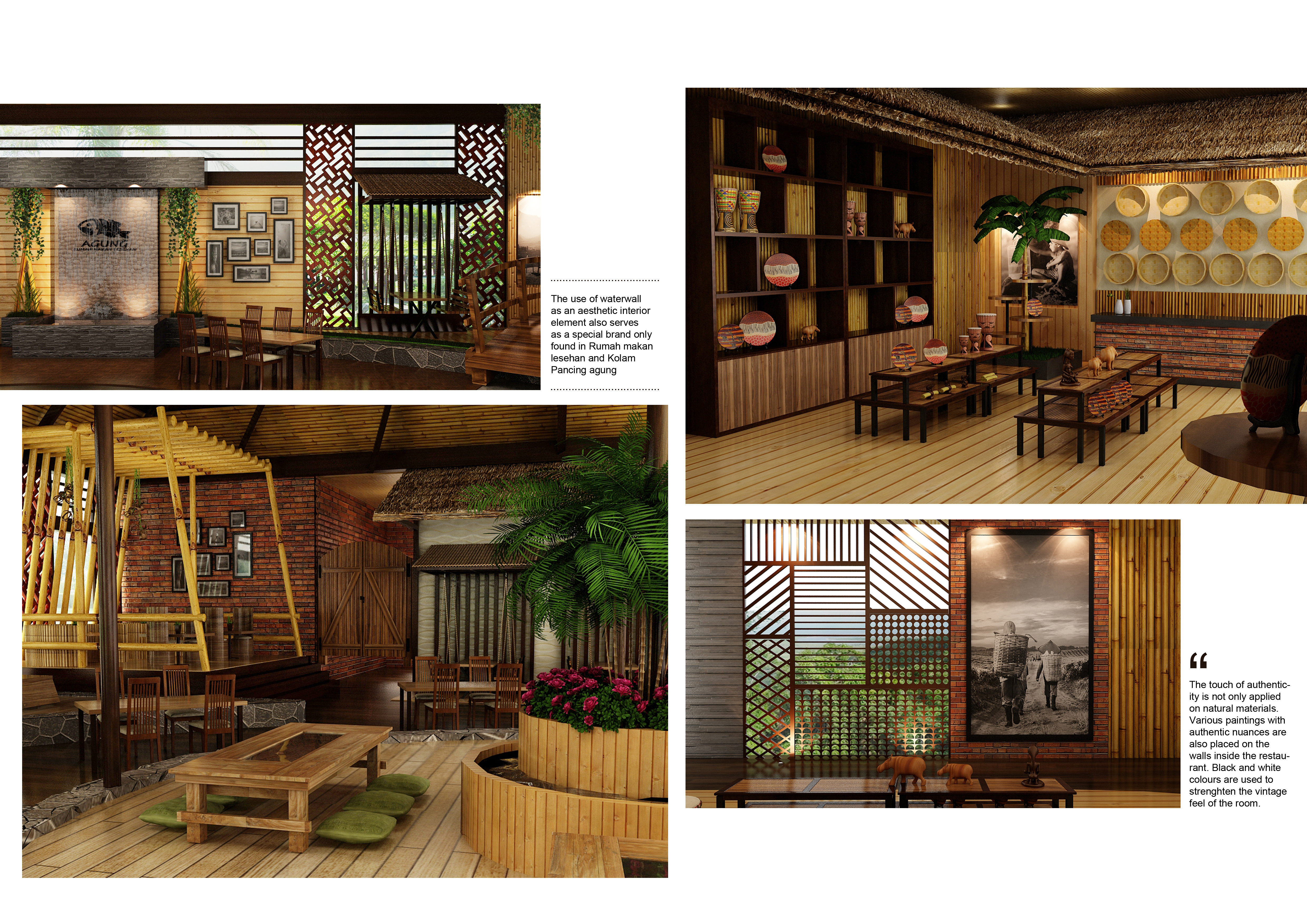 Tempat wisata kuliner rumah makan lesehan dan kolam pancing yang cukup digemari oleh masyarakat merupakan objek wisata yang dapat digunakan untuk mengangkat nilai lokal konten Jawa. Penerapan lokal konten pada didapat dari perancangan interior Rumah Makan Lesehan dan Kolam Pancing Agung di kota Batu, Malang.