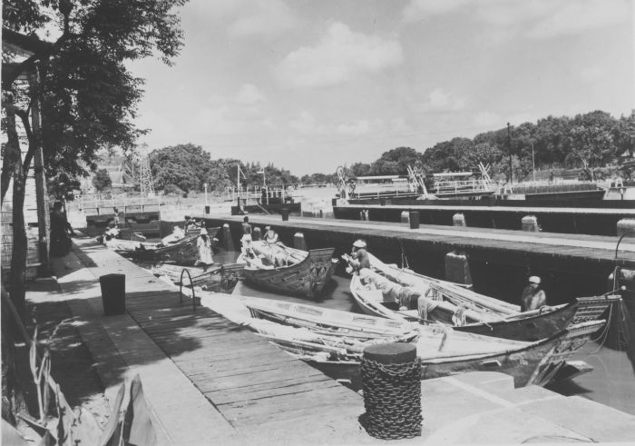 Kanal yang kosong oleh perahu diisi oleh perahu dari selatan dam, steleah diisi perahu pintu selatan ditutup. Kemudian air dalam kanal diturunkan sampai sama dengan ketinggihan air di sisi utara dam.