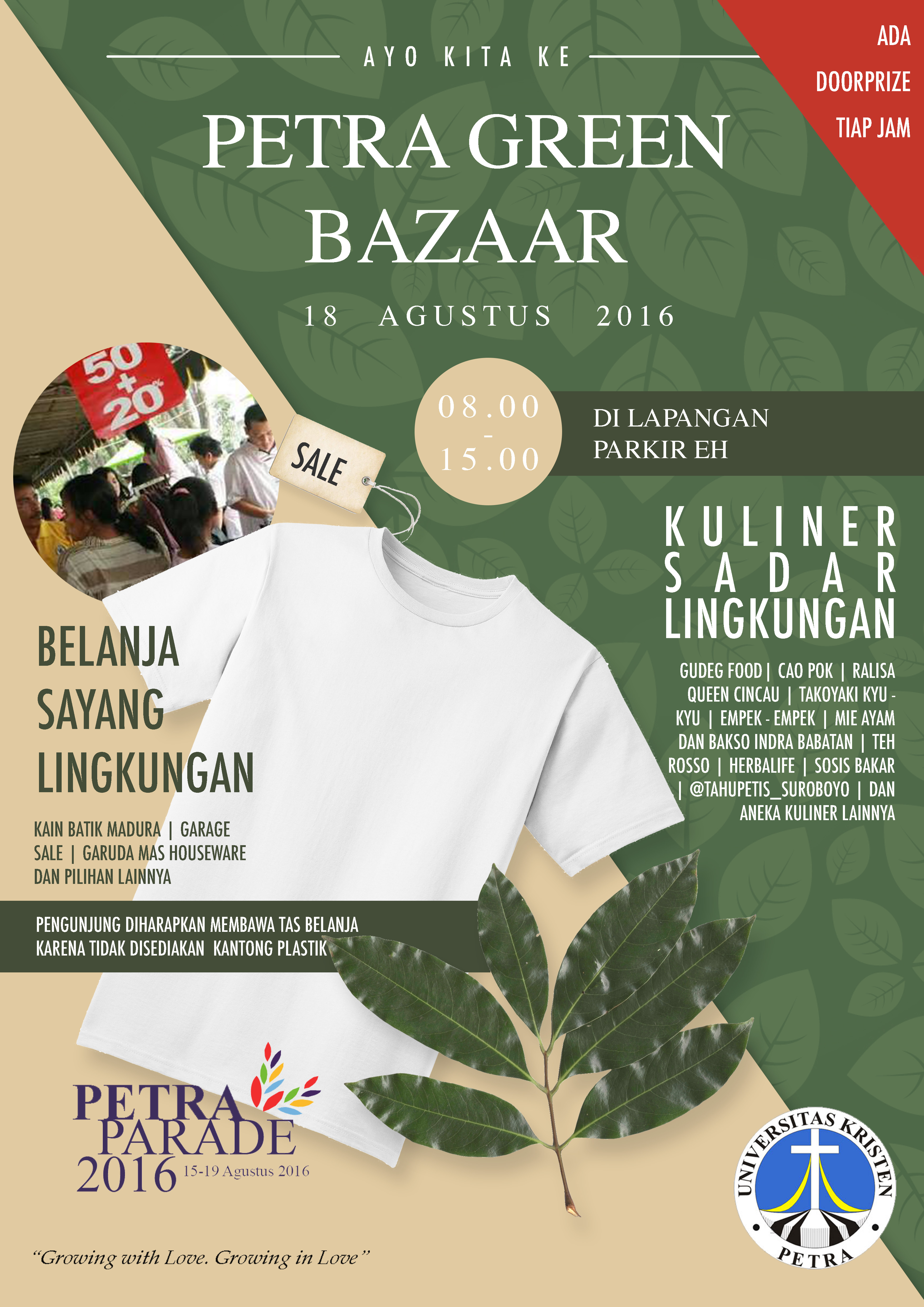 Universitas Kristen Petra didalam melaksanakan rangkaian acara Petra Parade 2016, mengadakan acara "Petra Green Bazaar" pada 18 Agustus 2016 bertempat di Lapangan parkir EH.