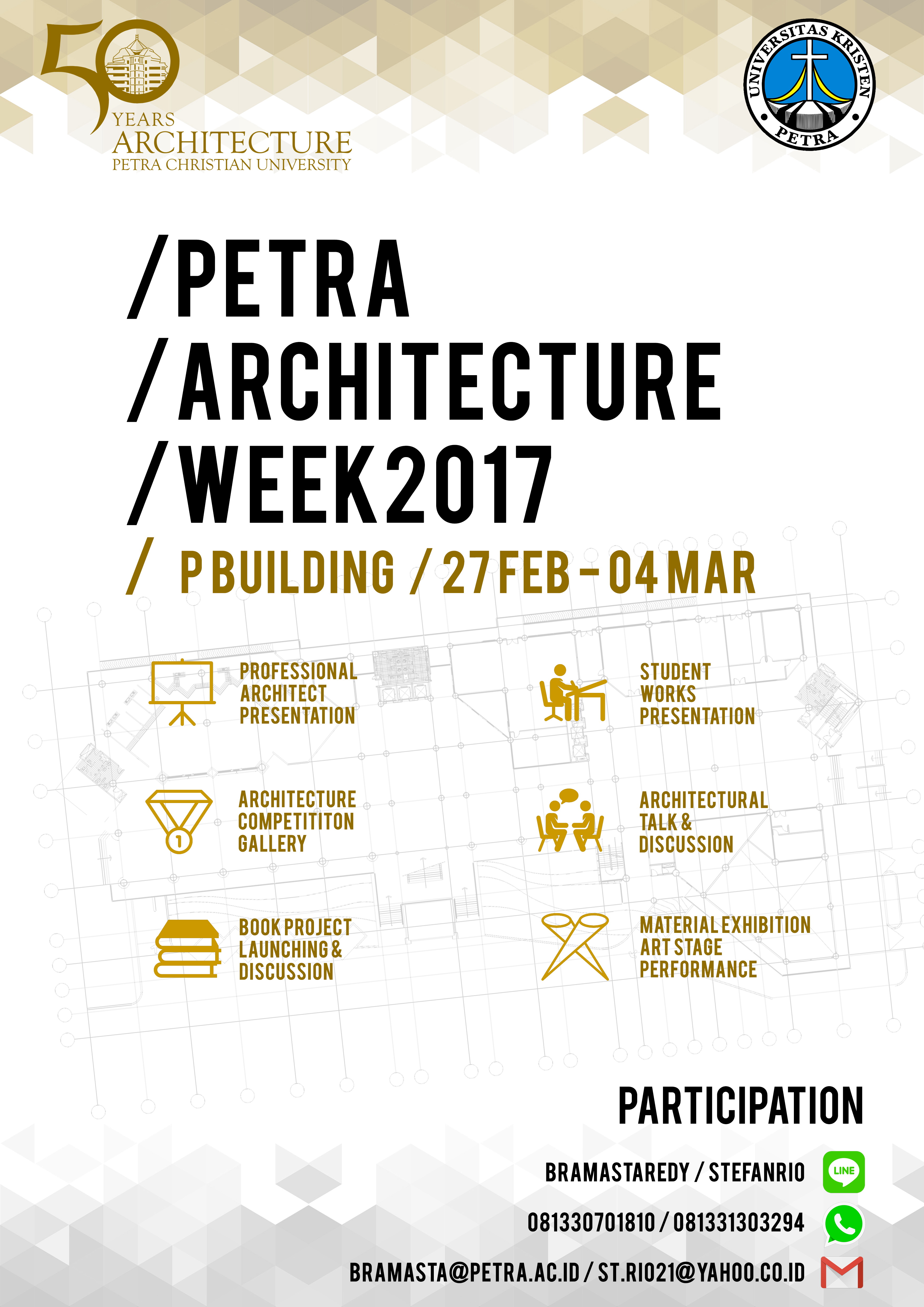 Dalam rangka merayakan HUT ke-50 progdi Arsitektur, akan diadakan acara Architecture Week 2017. Acara ini dilaksanakan pada 27 Februari - 4 Maret 2017 bertempat di gedung P. Banyak kegiatan yang dilaksanakan untuk Architecture Week 2017 ini.