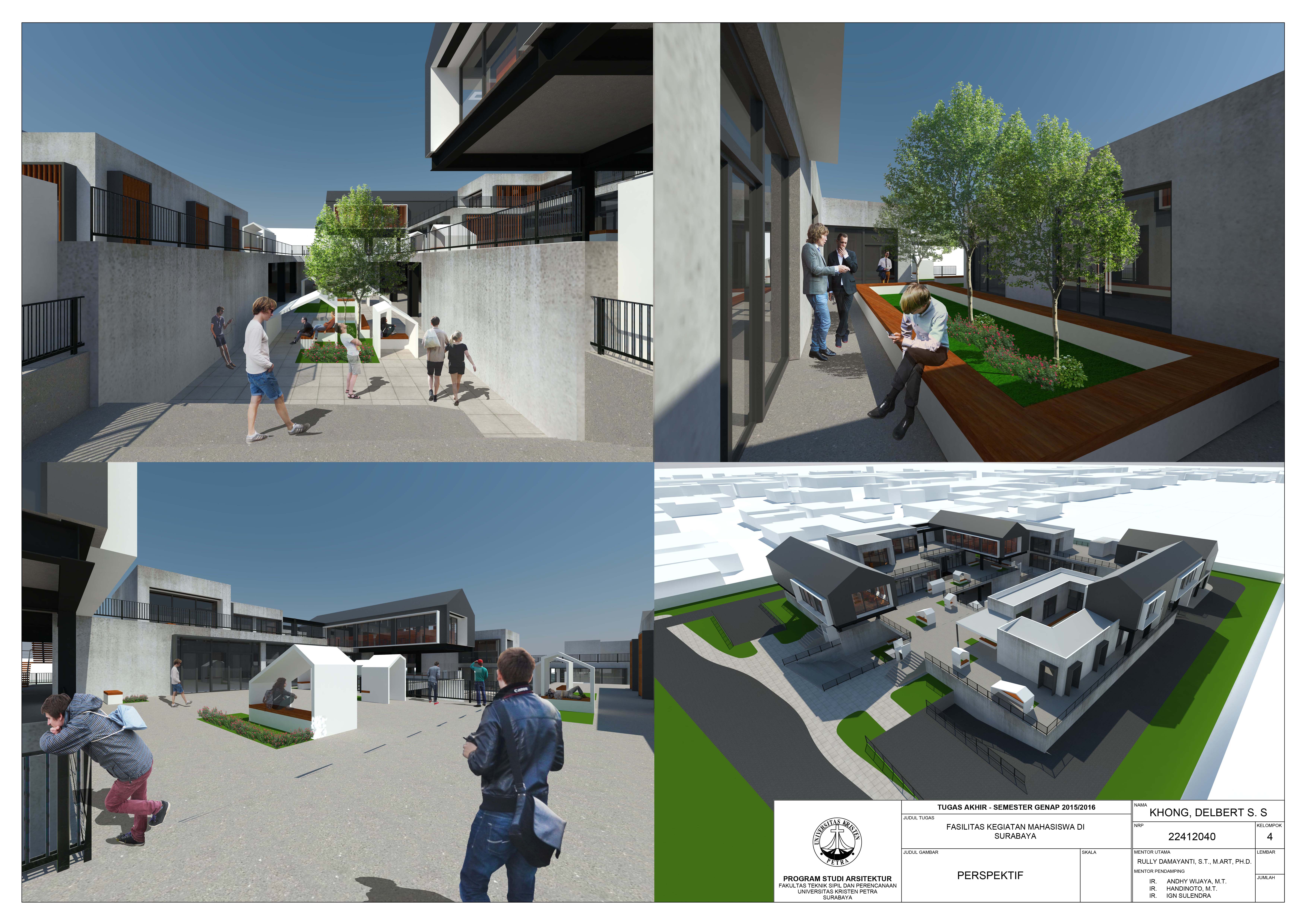 Kota Surabaya memiliki banyak fasilitas pendidikan dan merupakan tempat bagi beberapa universitas terbaik di Indonesia. Keadaan ini kurang didukung dengan fasilitas penunjang kegiatan belajar mahasiswa yang sesuai dengan gaya hidup anak muda sekarang. Fasilitas Kegiatan Mahasiswa ini merupakan fasilitas yang mewadahi kegiatan belajar tersebut dan juga aktivitas komunitas kreatif di luar jam perkuliahan. Kegiatan tersebut meliputi kegiatan akademis dan non-akademis. Konsep dari fasilitas ini adalah desain yang memperhatikan gaya belajar mahasiswa, yang dibagi dalam tiga kriteria yaitu visual, auditori, dan kinestetik. Pendekatan perilaku diaplikasikan untuk memahami masing-masing gaya belajar tersebut. Desain fasilitas ini juga disesuaikan dengan gaya hidup anak muda sekarang yaitu belajar sambil bersosialisasi. Sehingga fasilitas ini dilengkapi dengan perpustakaan, ruang seminar, ruang workshop, rent office, foodcourt, café, dan area duduk outdoor.