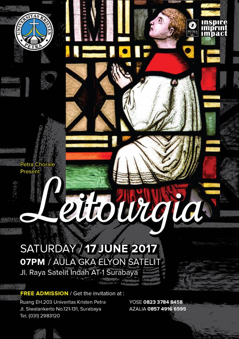 Program Apresiasi dan Pengembangan Musik Gereja Universitas Kristen Petra mengadakan konser paduan suara dengan tema "Leitourgia". Acara ini dilaksanakan pada 17 Juni 2017 di GKA Elyon Satelit Surabaya, jalan Raya Satelit Indah AT-1 Surabaya.