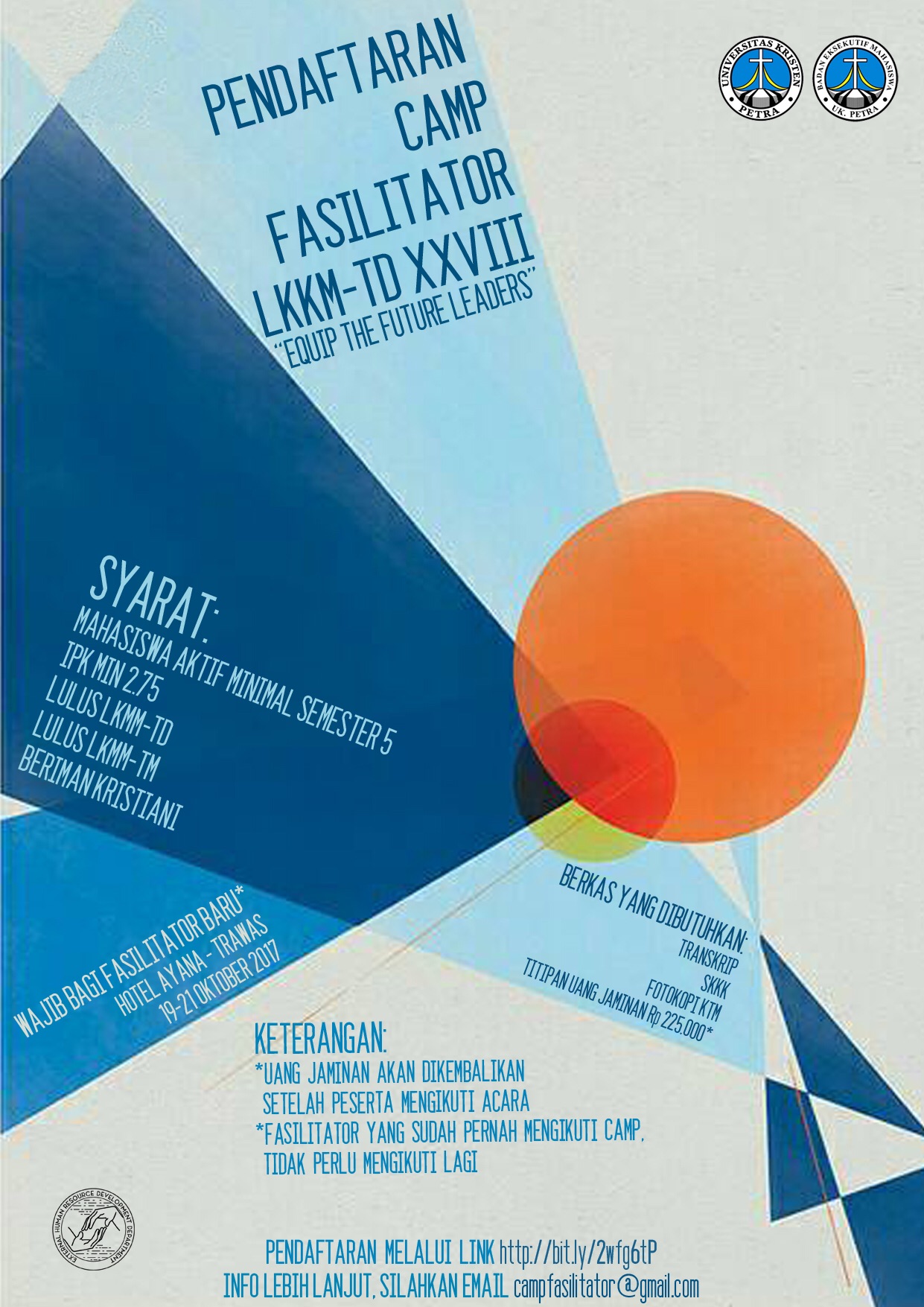 Badan Eksekutif Mahasiswa UK Petra Surabaya, membuka kesempatan bagi mahasiswa UK Petra untuk ikut serta dalam Camp Fasilitator LKKM-TD XXVIII. Acara ini dilaksanakan pada 19-21 Oktober 2017 di hotel Ayana Trawas.