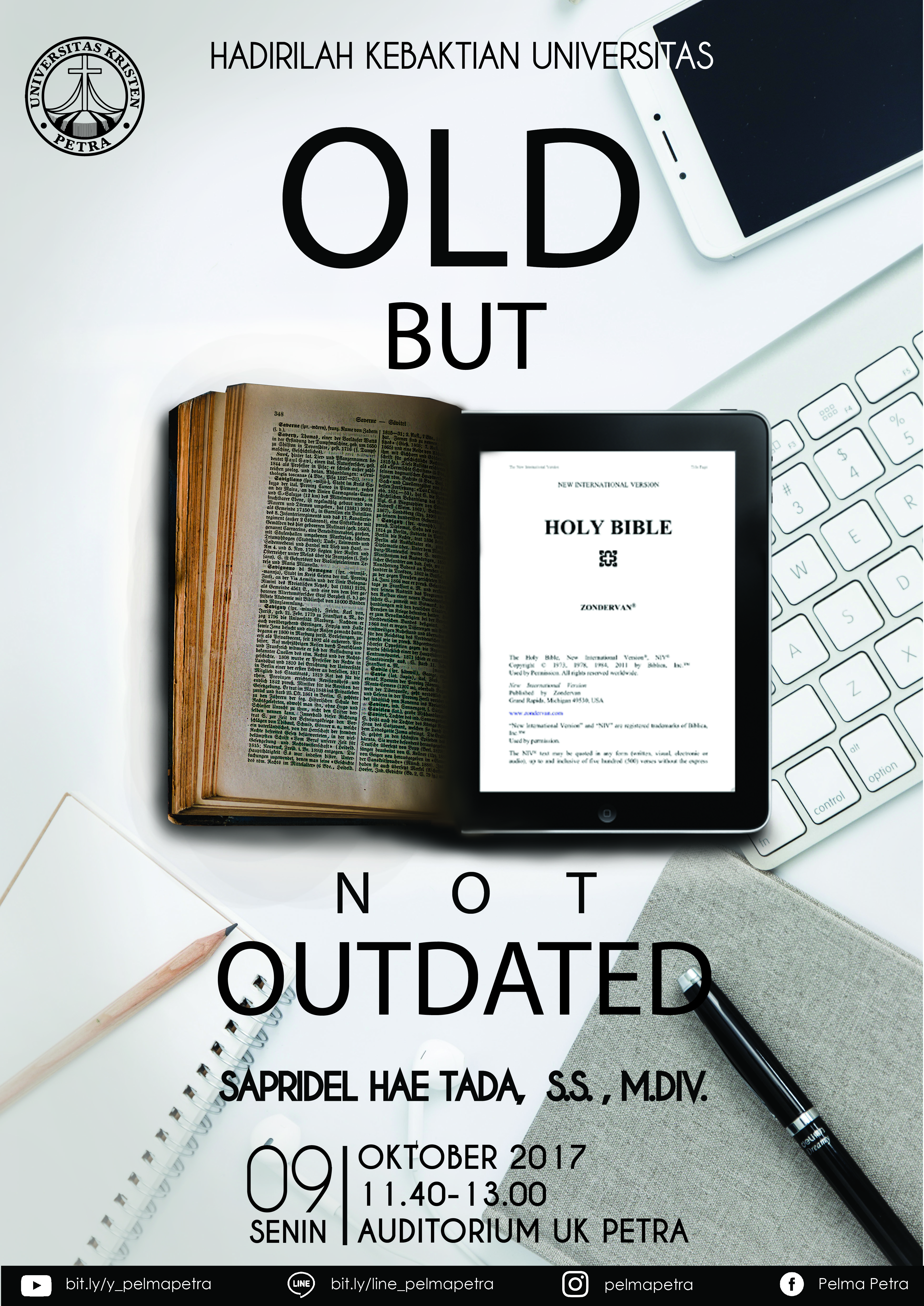 Pusat Kerohanian mengundang civitas akademika UK Petra untuk hadir dalam acara Kebaktian Universitas. Kebaktian ini diadakan pada 09 Oktober 2017, bertempat di Auditorium UK Petra. Dengan tema Old but not outdated, dan sebagai pengkhotbah adalah Sapridel Hae Tada.