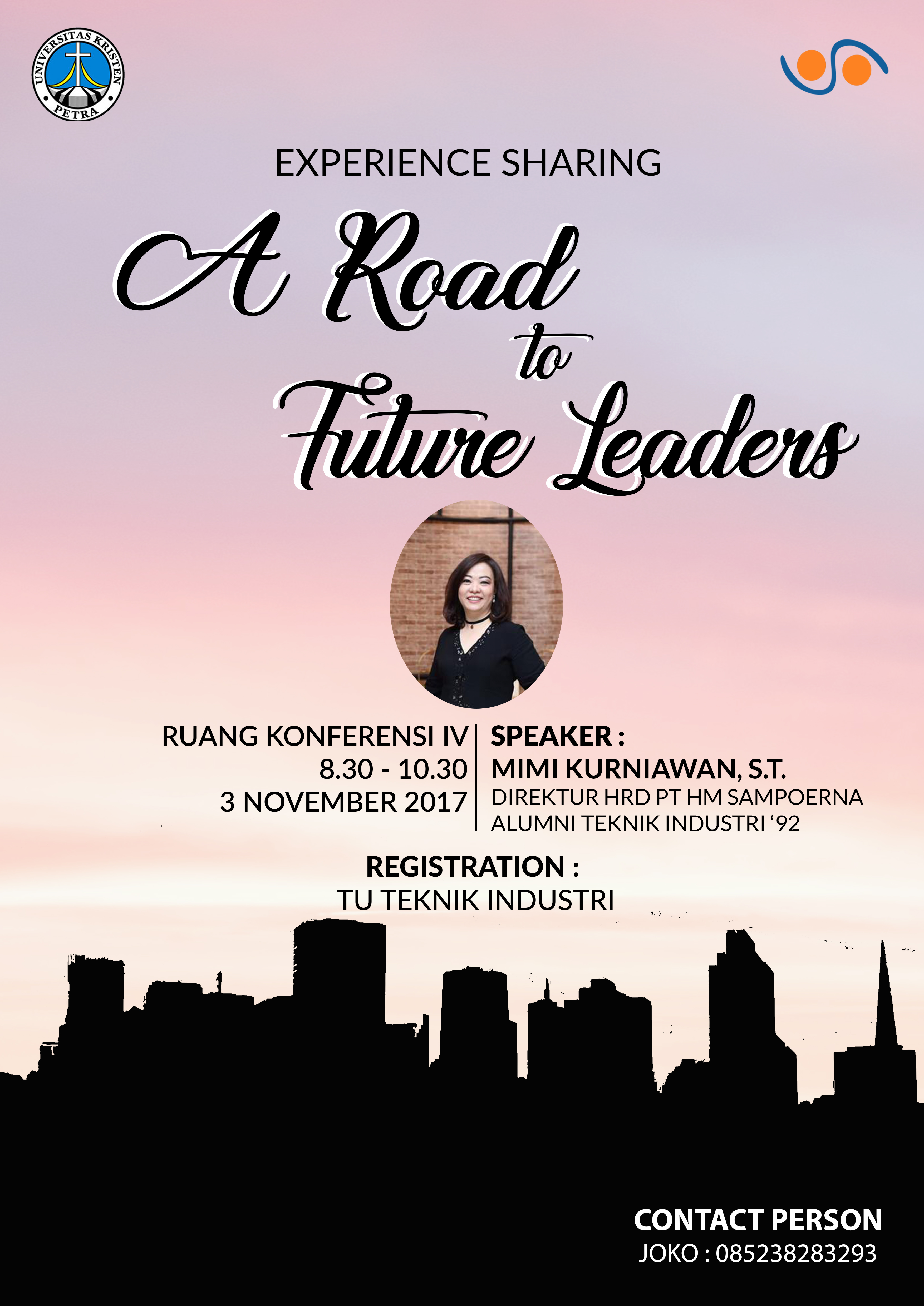Progdi Teknik Industri UK Petra Surabaya pada tanggal 03 November 2017, mengadakan acara Experience Sharing dengan tema "a road to future leaders". Bertempat di ruang konferensi IV gedung Radius Prawiro. Dan menghadirkan Mimi Kurniawan, S.T. sebagai narasumber.