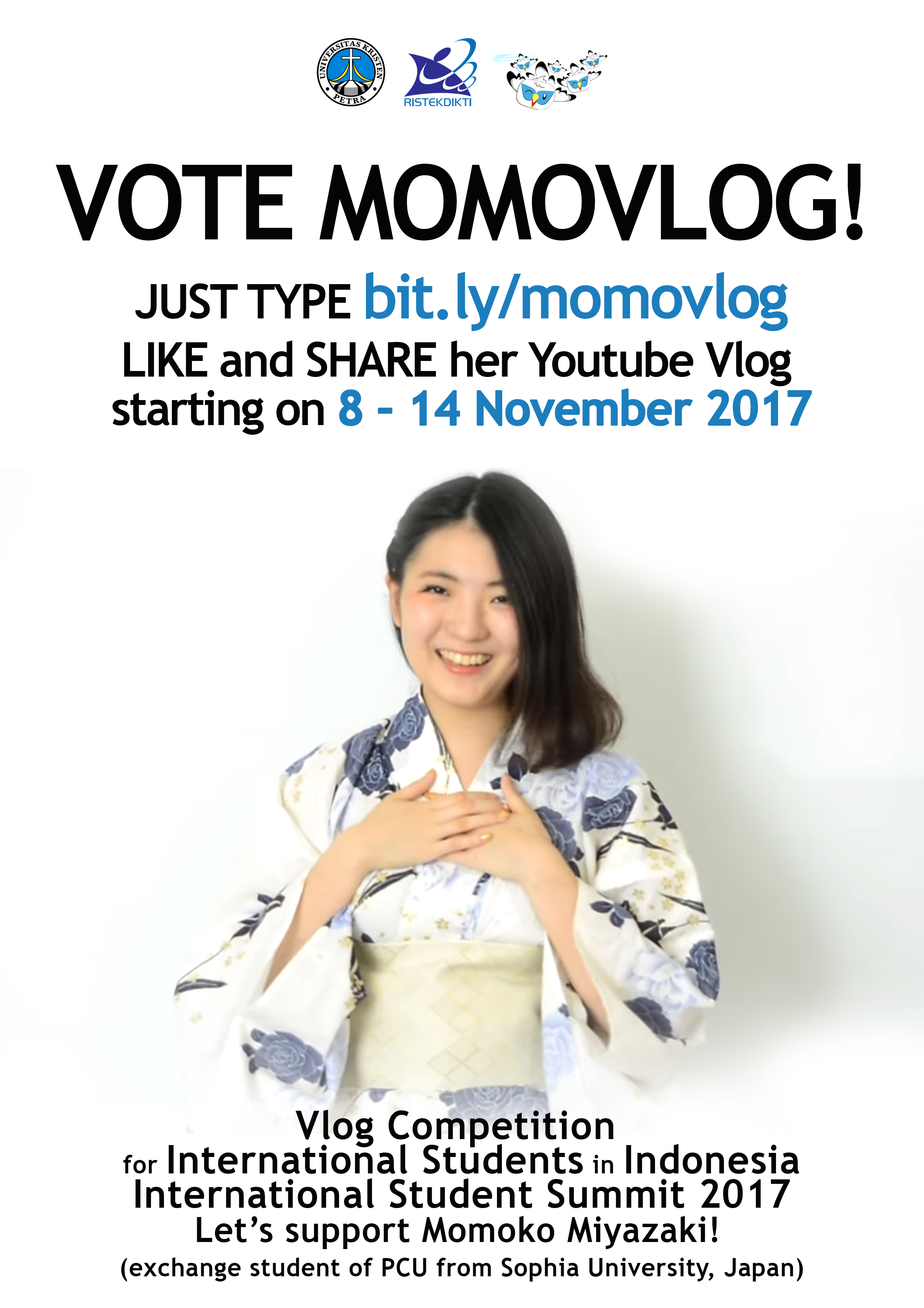Kementrian Riset dan Dikti bekerjasama dengan UK Petra mengadakan lomba vlog tentang studi di Jepang. Video vlog dapat di upload di youtube pada tanggal 8-14 November 2017.