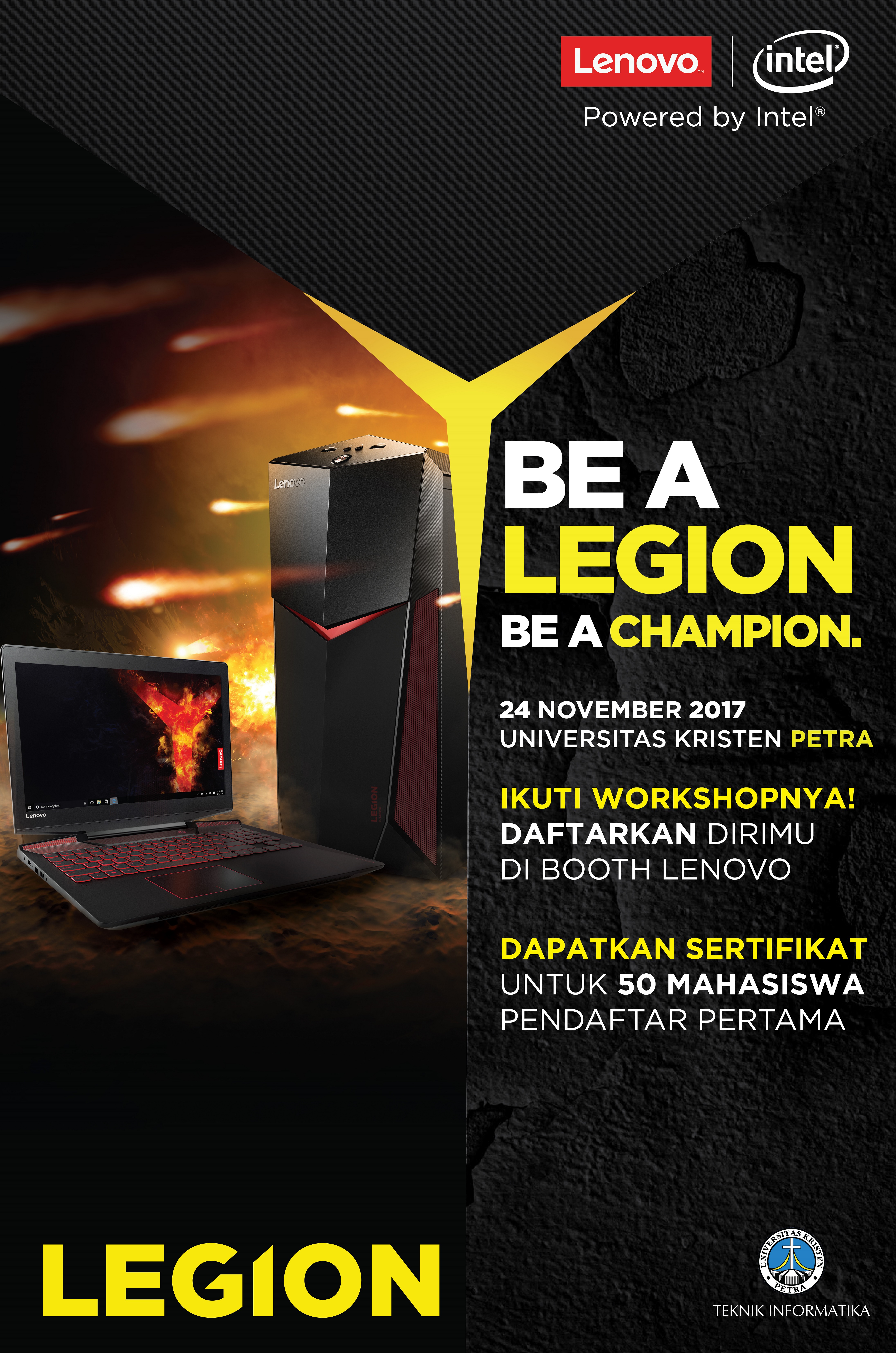 Worksop dengan tema be a legion be a champion diadakan program studi teknik Informatika UK Petra. Acara ini diadakan pada tanggal 24 November 2017 bertempat di kampus UK Petra. Bagi 50 pendaftar pertama akan mendapatkan sertifikat.