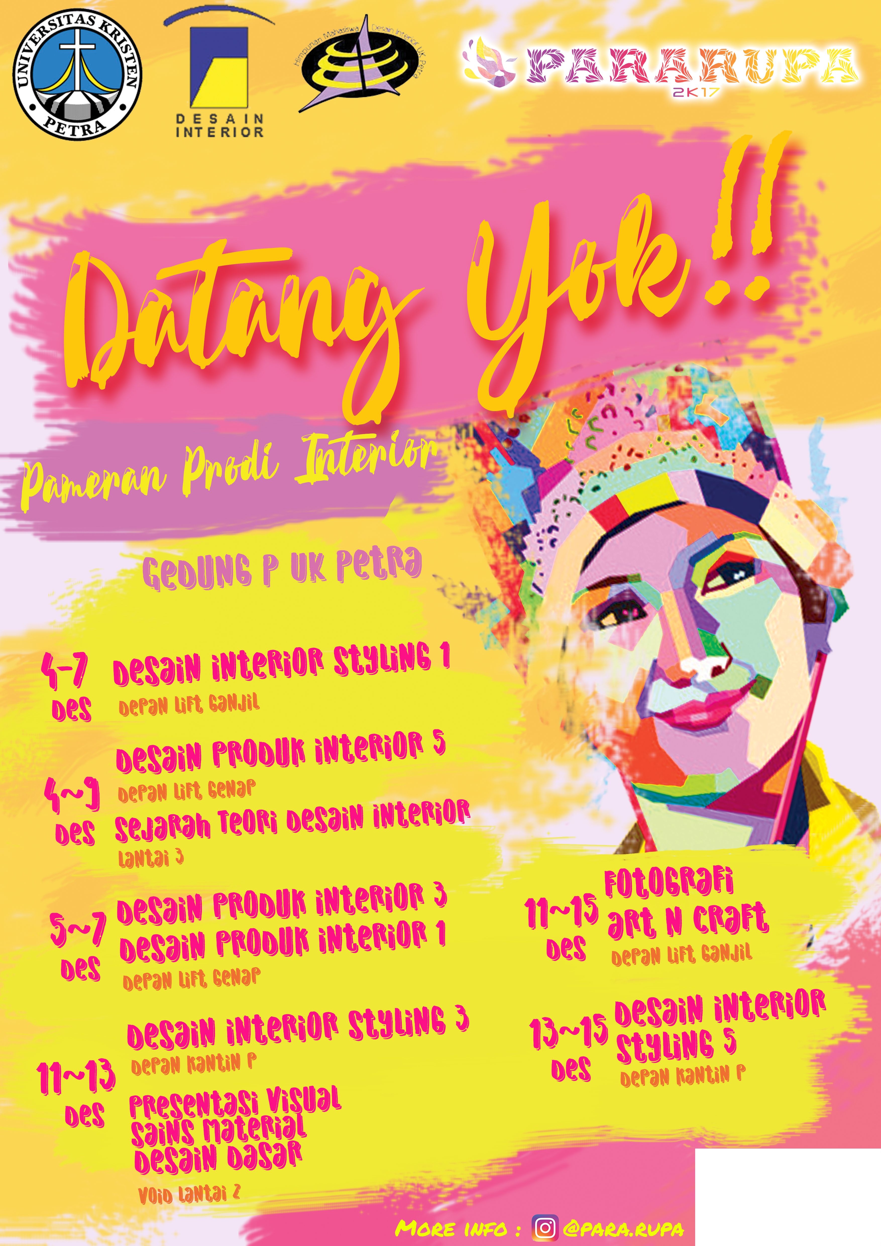 Program Studi Desain Interior UK Petra mengadakan pameran hasil karya mahasiswa, dengan mengangkat tema "Pararupa". Acara ini dilaksanakan pada 4-15 Desember 2017, bertempat di gedung P Universitas Kristen Petra Surabaya.