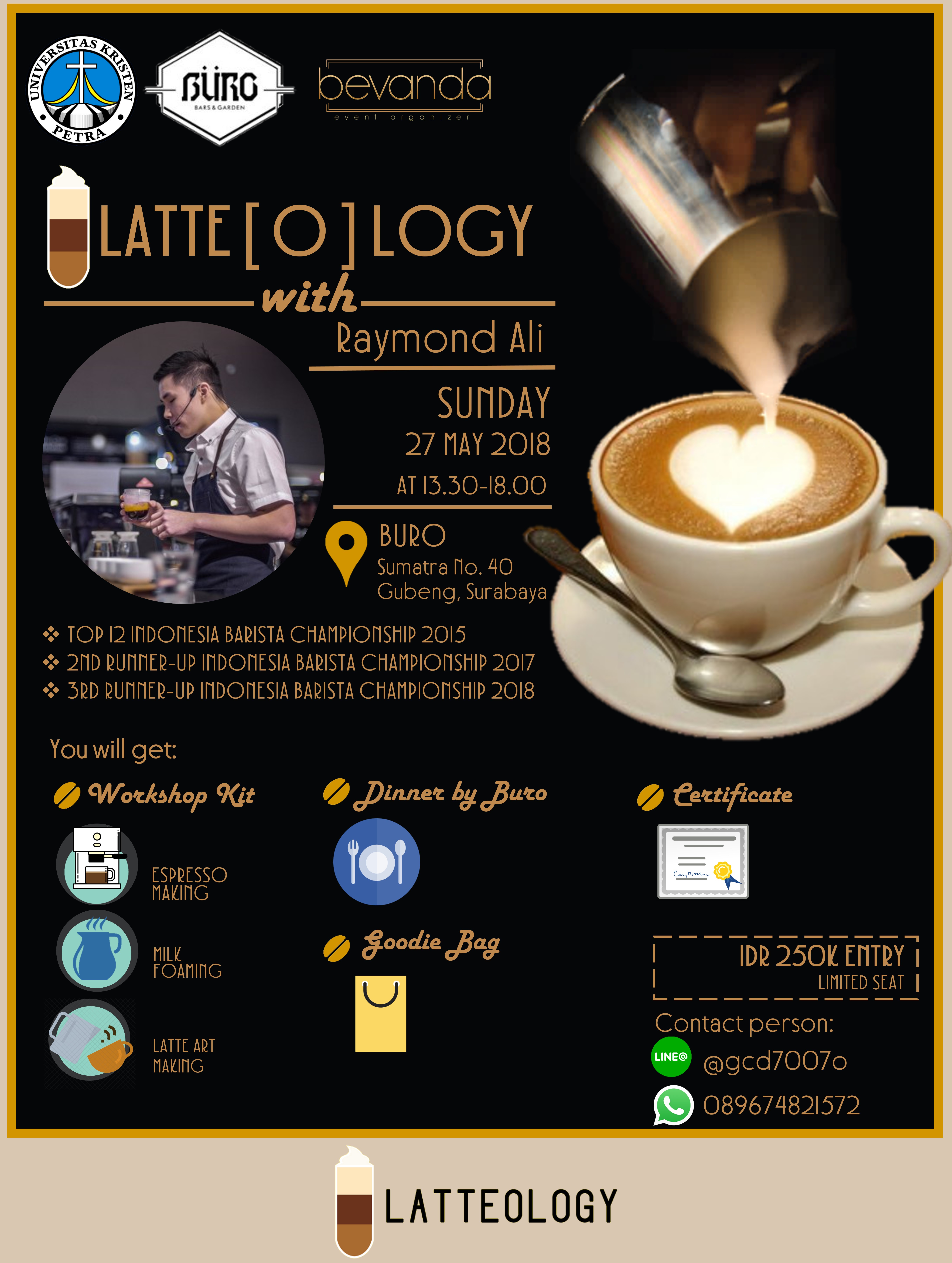 Program manajemen Perhotelan UK Petra, mengadakan kegiatan workshop tentang barista kopi, dengan mengangkat topik Latteology, kegiatan ini mendatangkan Raymond Ali yang ahli dalam barista dan dilaksanakan pada 27 Mei 2018 di Buro jalan Sumatra no.40 Surabaya.