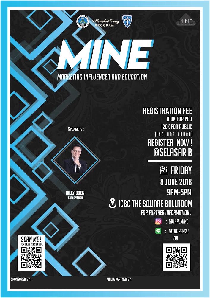 Program Manajemen Pemasaran Universitas Kristen Petra Surabaya mengdakan seminar dengan tema Marketing Influencer and Education. Dengan mendatangkan narasumber Billy Boen, acara ini diselenggarakan pada 08 Juni 2018 bertempat di ICBC the Square Ballroom.