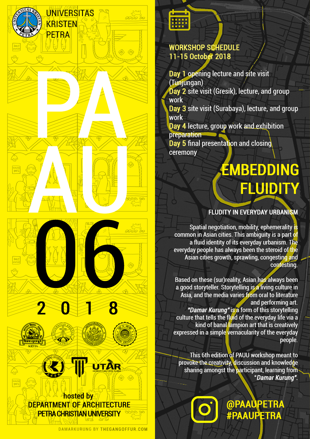 Program Studi Teknik Arsitektur Universitas Kristen Petra Surabaya pada tanggal 11-15 Oktober 2018 mendapat kesempatan menjadi tuan rumah kegiatan International workshop PAAU 6th (Platform for Asian Architecture and Urbanism). Kegiatan ini mengangkat tema "Embedding Fluidity".