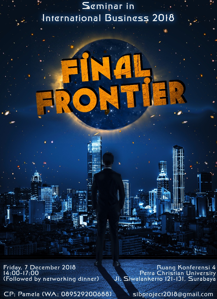 Program studi International Business Management UK Petra pada tanggal 07 Desember 2018 mengadakan seminar international business 2018 dengan mengangkat tema Final Frontier. Acara ini dilaksanakan pada 07 Desember 2018 bertempat di ruang konferensi IV gedung Radius Prawiro.