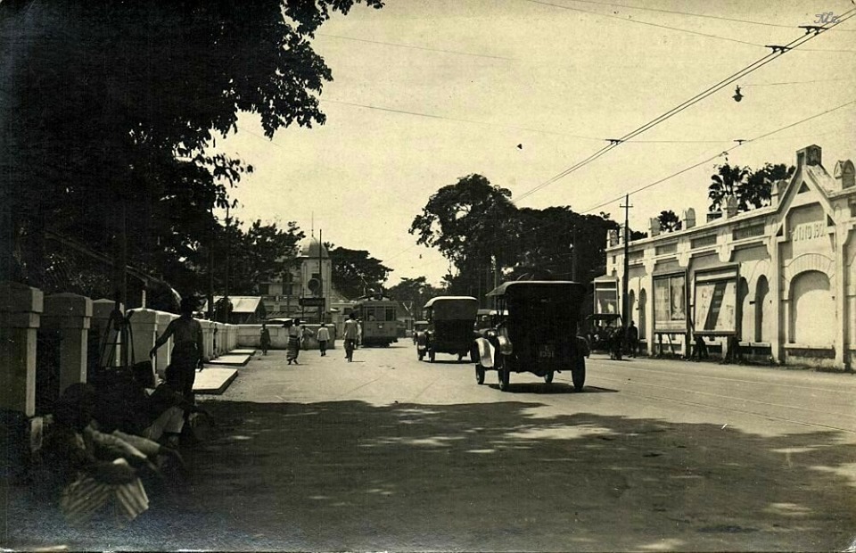 Pemandangan lalu lintas di salah satu jalan di Surabaya sekitar tahun 1930