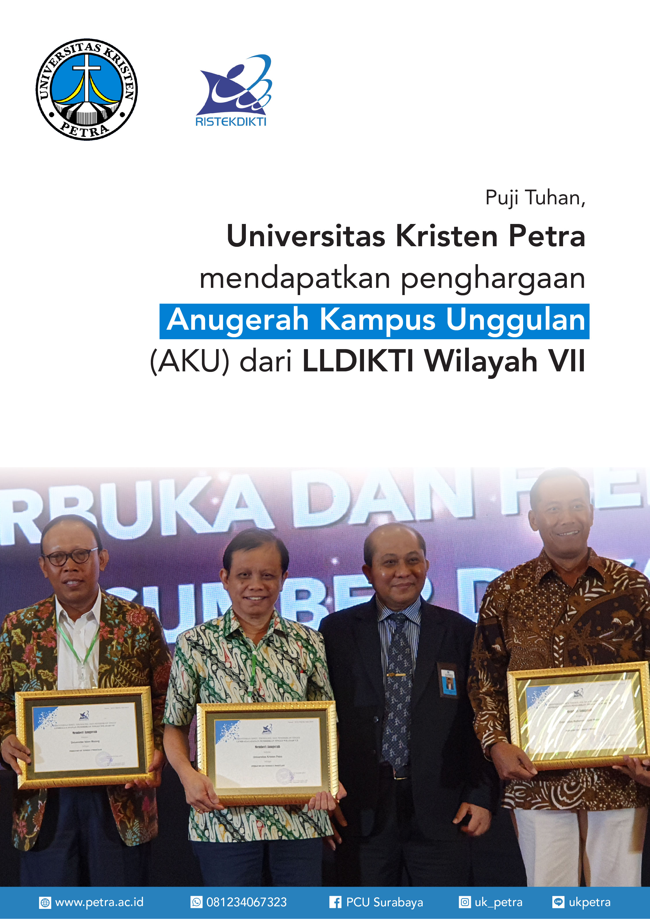 Universitas Kristen Petra Surabaya mendapat penghargaan sebagai kampus unggulan dari LLDIKTI wilayah VII tahun 2019.