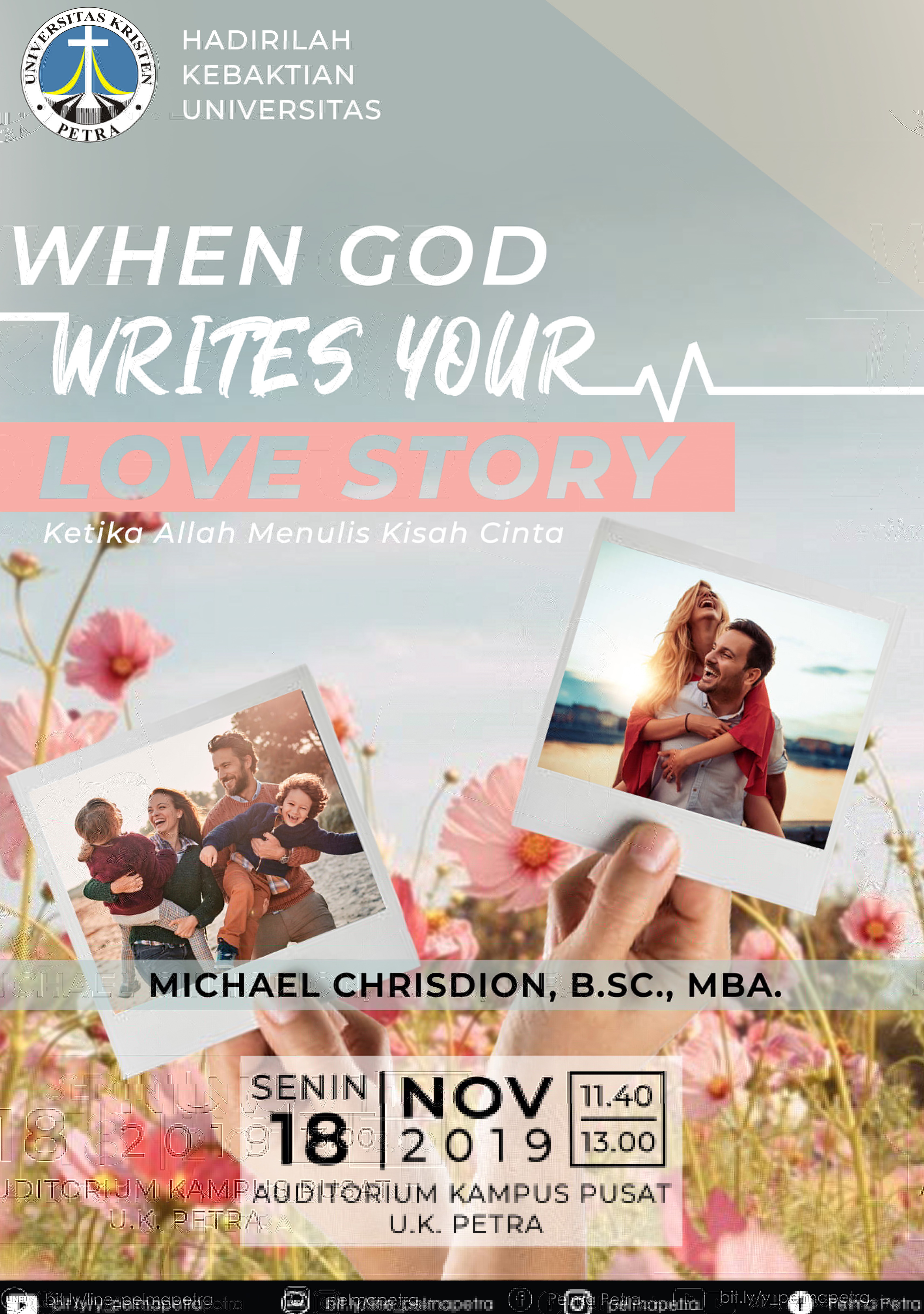 Universitas Kristen Petra Surabaya mengundang seluruh civitas UK Petra untuk hadir dalam kebaktian universitas yang dilaksanakan setiap hari Senin. Pada tanggal 18 November 2019 bertempat di Auditorium UK Petra, kebaktian ini mengangkat tema when God writes your love stroy (ketika Allah menulis surat cinta) dengan pengkhotbah: bapak Michael Chrisdion.