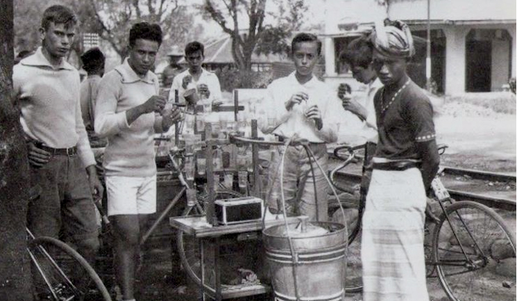 Penjual es grim melayani pembeli pada sekitar tahun 1930an