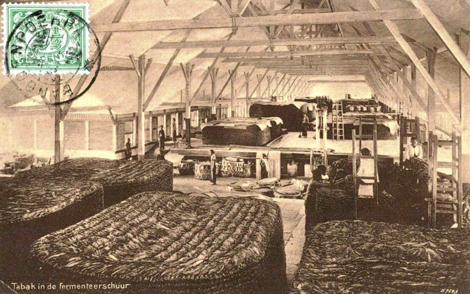 Ruangan pengeringan dan pengolahan daun tembakau , Surabaya 1913