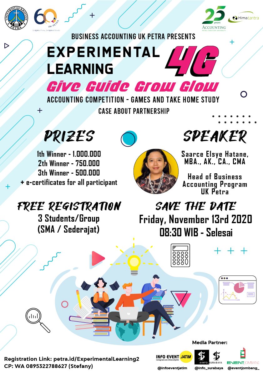 Program Akuntansi Bisnis Universitas Kristen Petra Surabaya, pada 13 November 2020 mengadakan lomba accounting dengan tema : Experimental Learning". Kegiatan ini diperuntukkan untuk tingkat SLTA sederajat dan bebas biaya pendaftaran, untuk 1 tim terdiri dari 3 orang.