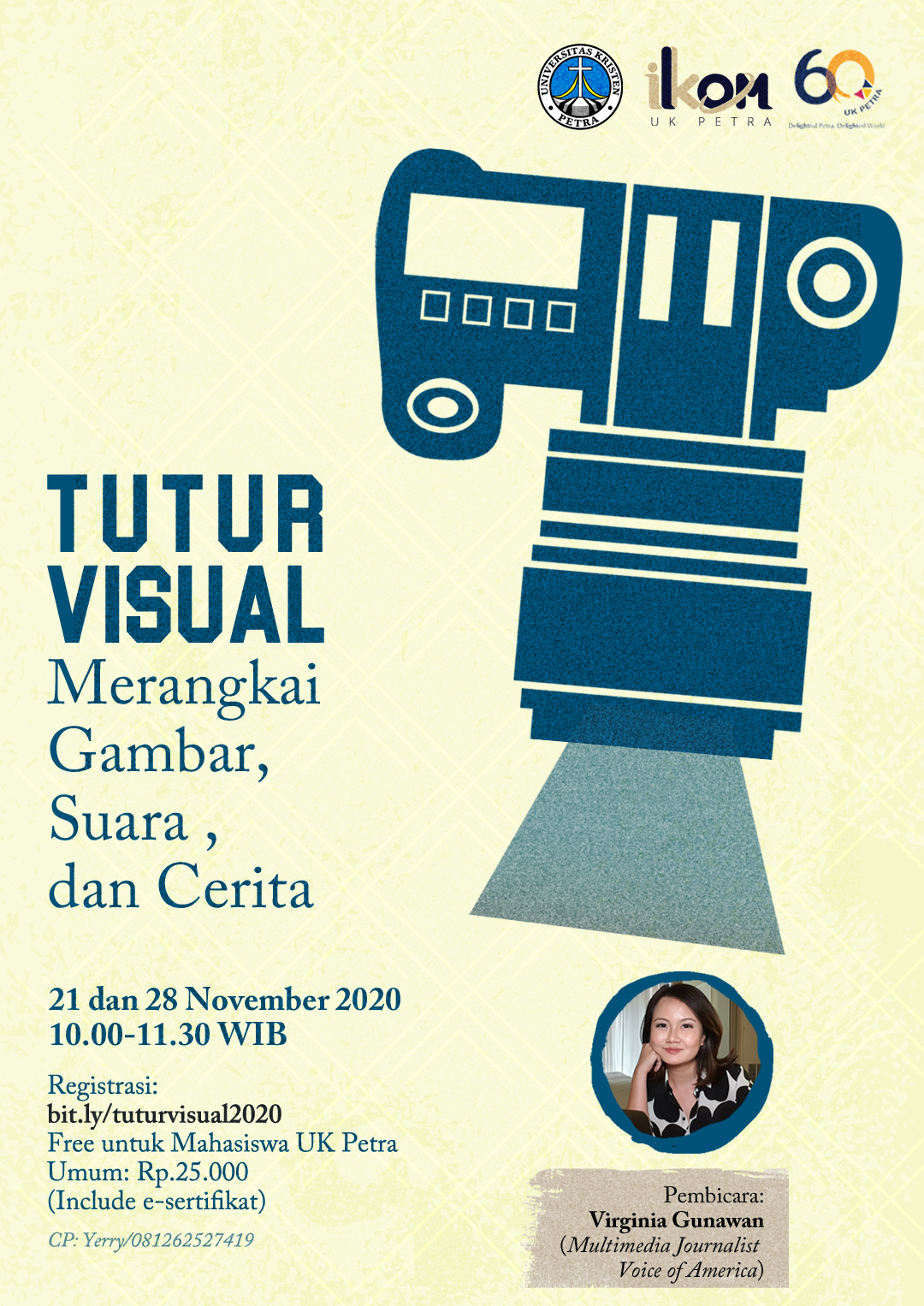 Program Studi Ilmu Komunikasi UK Petra, pada tanggal 21 dan 28 November 2020 mengadakan pelatihan journalism dengan tema "Tutur Visual". Pelatihan ini mengundang narasumber Virginia Gunawan. Biaya pendaftaran Rp.25.000,- dengan menggunakan format daring.
