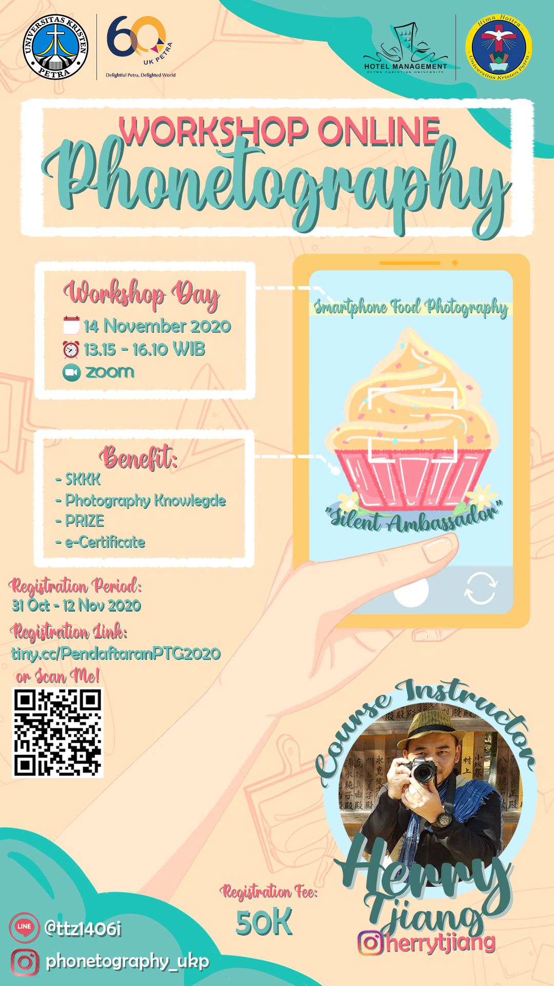 Program Manajemen Perhotelan UK Petra pada tanggal 14 November 2020, mengadakan workshop online dengan tema "Phonetography". Acara ini menghadirkan Herry Tjiang sebagai narasumber.
