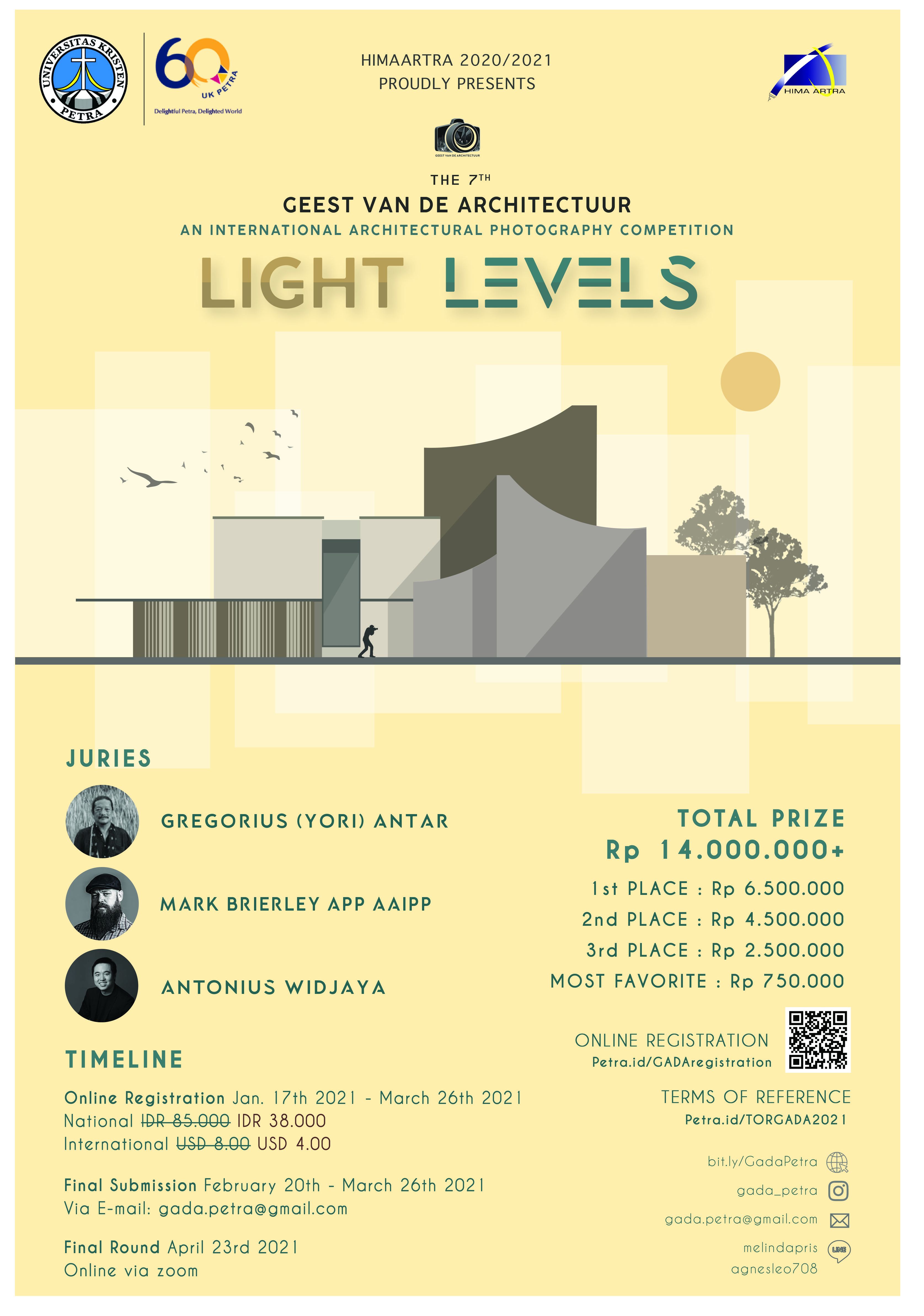 Program Studi Teknik Arsitektur Universitas Kristen Petra Surabaya mengadakan kompetisi fotografi tentang arsitektur. Pada kompetisi ini mengangkat tema " Light Levels". Pendaftaran secara online dibuka dari tanggal 17 Januari 2021 hingga tanggal 26 Maret 2021. Pengumuman pemenang dilakukan secara online pada tanggal 23 April 2021.