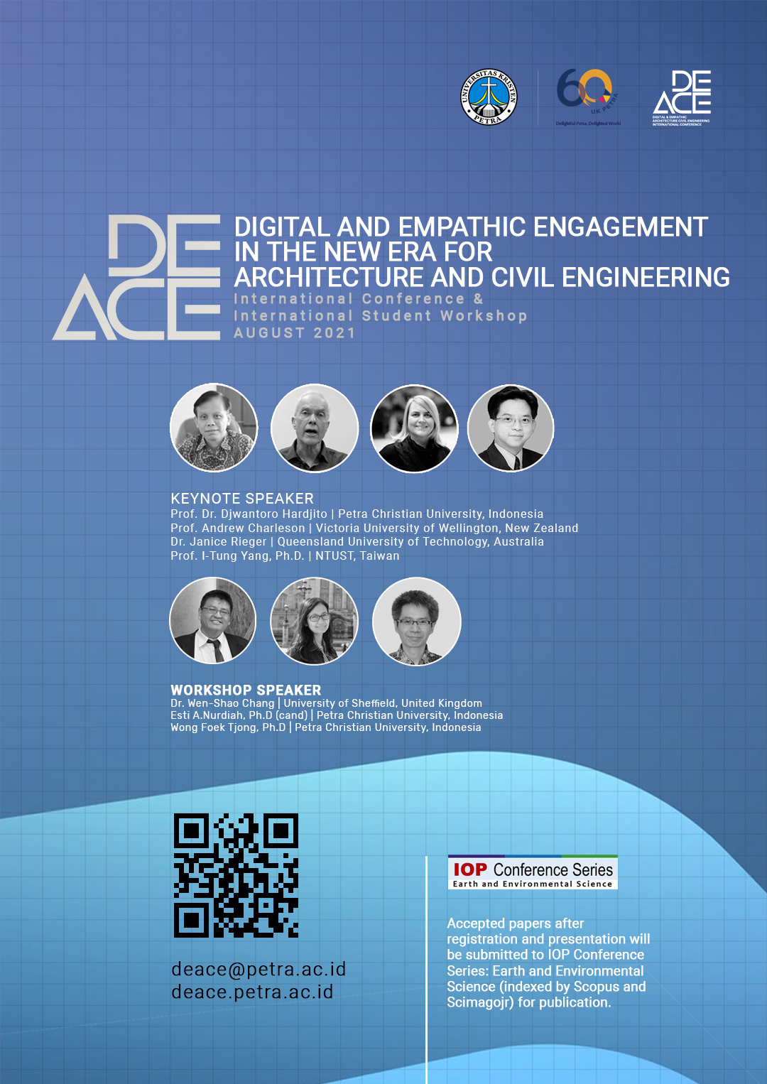 Digital and empathic engagement in the new era for architecture and civil engineering. (DEACE international conference) akan diadakan oleh Fakultas Teknik Sipil dan Perencanaan UK Petra, pada tanggal 20-21 Agustus 2021.