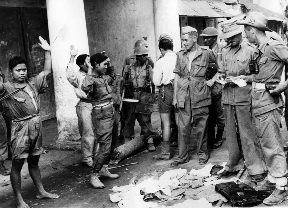 Pasukan Inggris melucuti para pejuang kemerdekaan di Surabaya, 1945