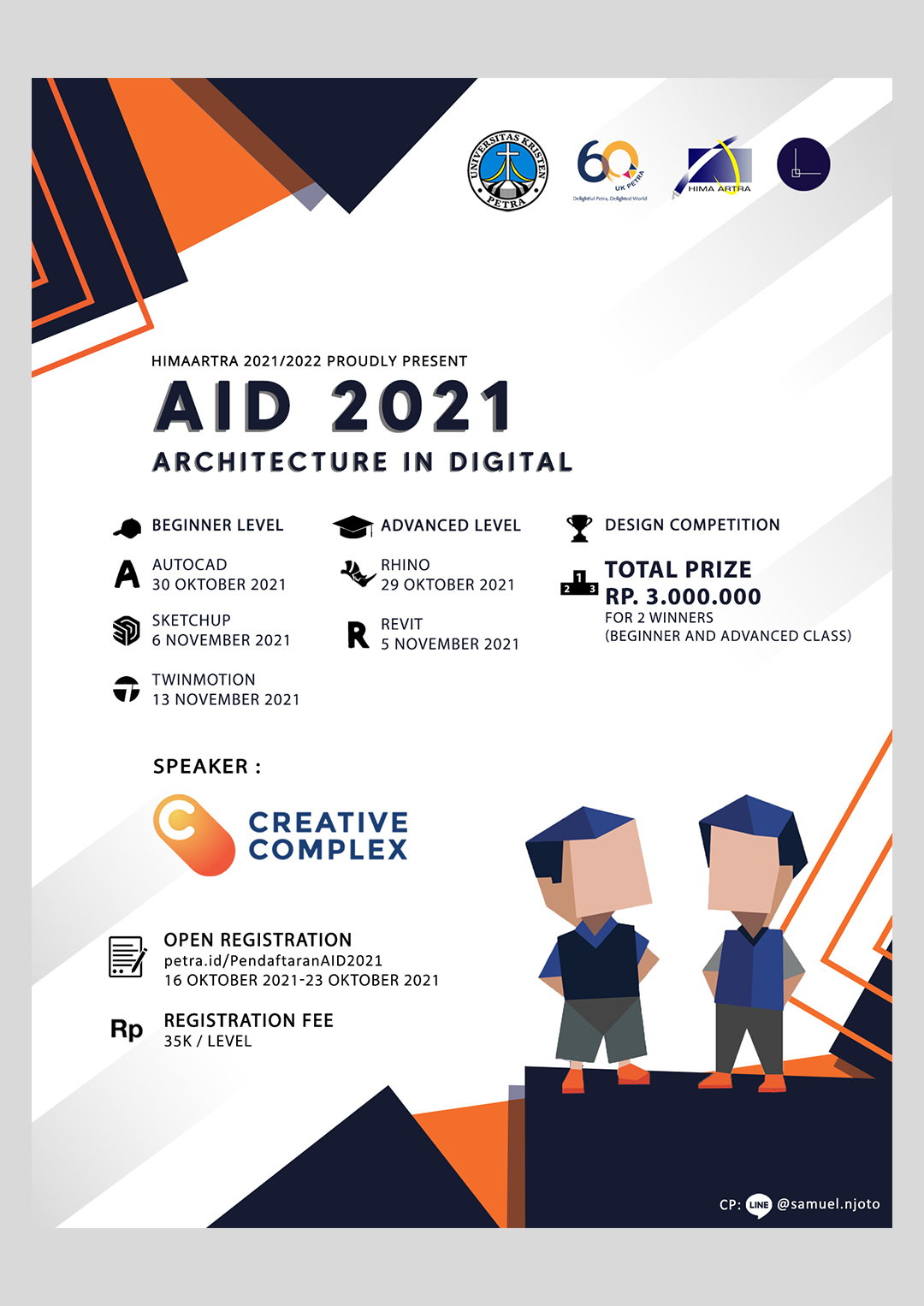 Program Studi Teknik Arsitektur UK Petra mengadakan kompetisi Architecture in Digital 2021, dengan memperebutkan total hadiah 3.000.000 Rupiah. Untuk info pendaftaran petra.id/PendaftaranAID2021 dibuka pada tanggal 16 -23 Oktober 2021.