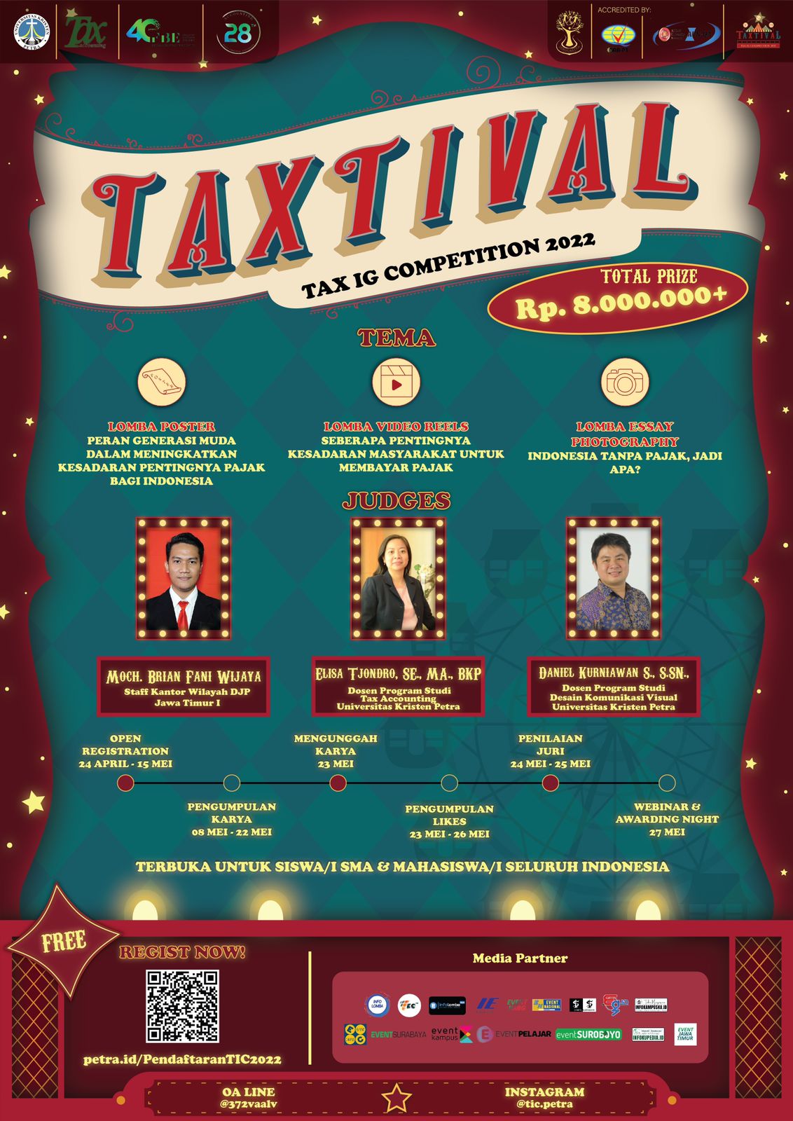 Kegiatan Taxtival adalah lomba yang diadakan HIMAJAKTRA untuk menyalurkan kreatifitas masing-masing untuk menghasilkan karya yang mampu mengubah perspektif masyarakat terkait pajak di Indonesia. Bentuk dari kegiatan ini adalah Lomba Poster, Video Reels, dan Essay Photography dengan peserta SMA dan mahasiswa seluruh Indonesia. Lomba ini tidak dipungut biaya apapun. Pendaftaran dibuka tanggal 24 April hingga 15 Mei 2022.