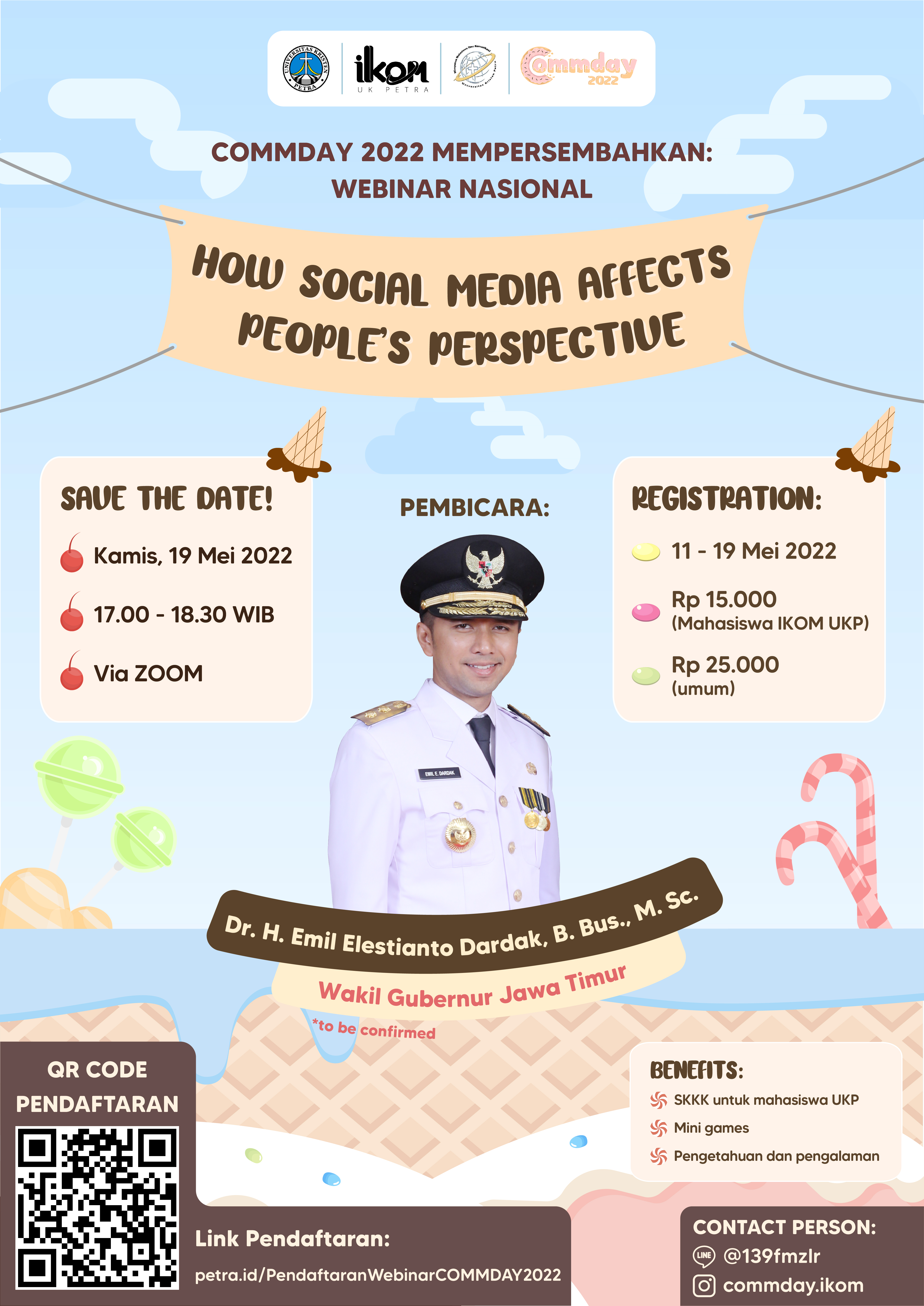 Webinar Nasional ini mengangkat tema “How Social Media Affects People’s Perspective” dengan pembicara spesial yaitu Pak Emil Dardak, Wakil Gubernur Jawa Timur.