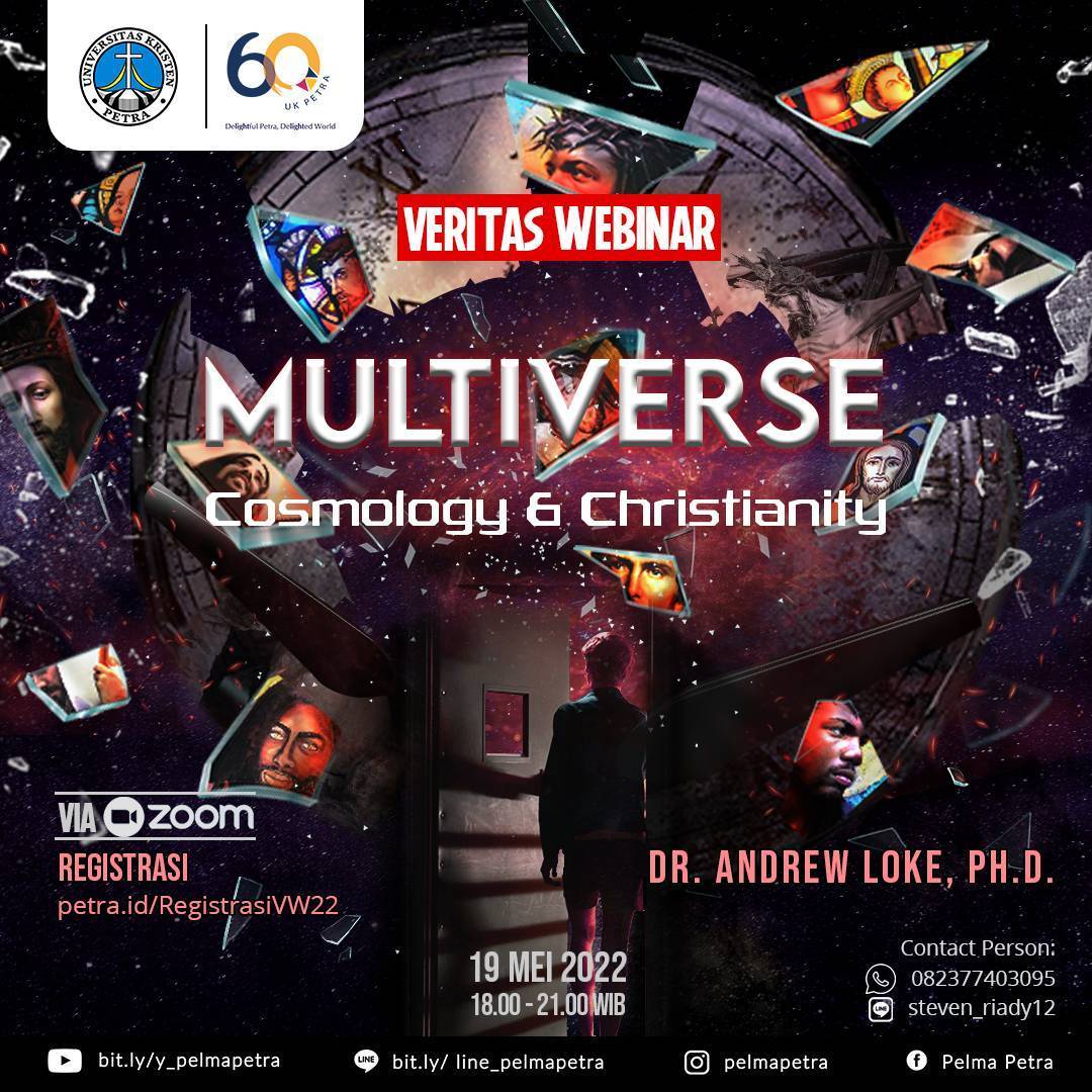 Pusat Kerohanian UK Petra mengundang civitas UK Petra untuk hadir dalam Veritas webinar multiverse cosmoslogy and christianity. Yang diselenggarakan pada 19 Mei 2022 jam 18.00 - 21.00 WIB. Dengan narasumber Dr. Andrew Loke, Ph.D. Untuk link pendaftaran petra.id/RegistrasiVW22