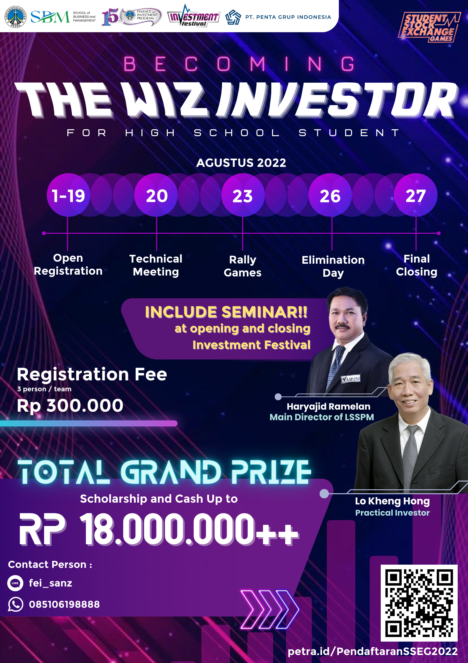 Student Stock Exchange Games (SSEG) 2022 diadakan oleh Program Manajemen Keuangan UK Petra. Pelaksanaannya pada tanggal 23-27 Agustus 2022. Games ini merupakan kompetisi saham yang diadakan program finest UKP yang ditujukan untuk anak SMA. Dengan biaya pendaftaran Rp.300.000 per tim.