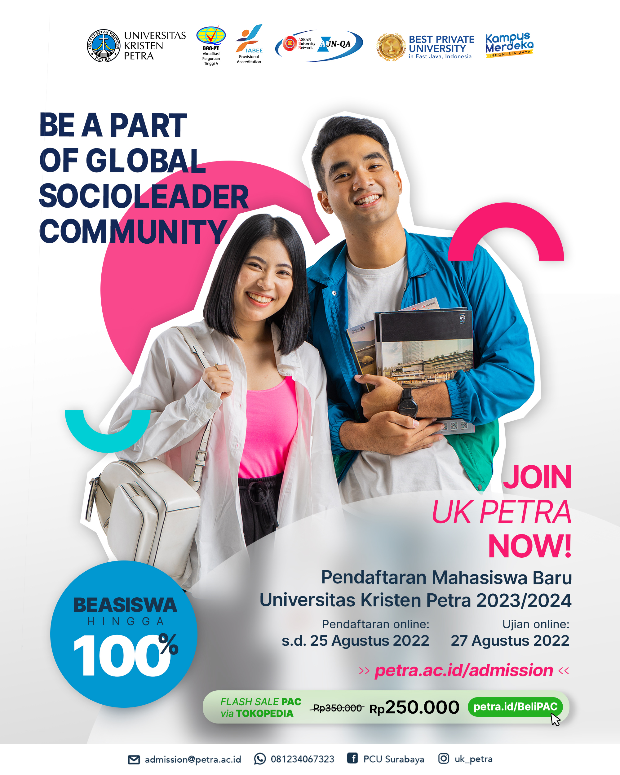 Universitas Kristen Petra Surabaya kembali membuka kesempatan untuk menjadi mahasiswa baru. Pendaftaran dibuka hingga tanggal 25 Agustus 2022.