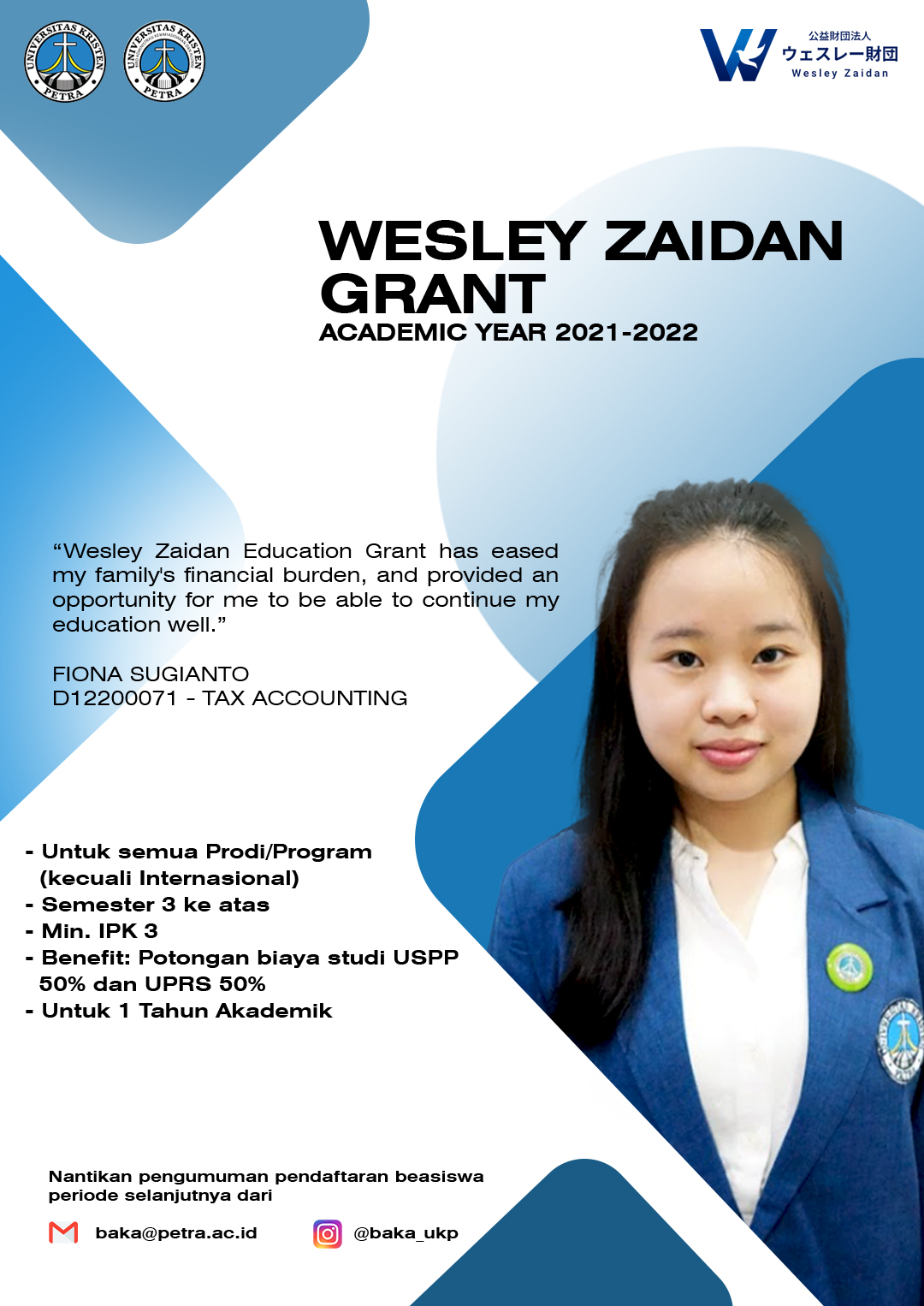 Testimoni beasiswa dari Wesley Zaidan tahun akademik 2021-2022