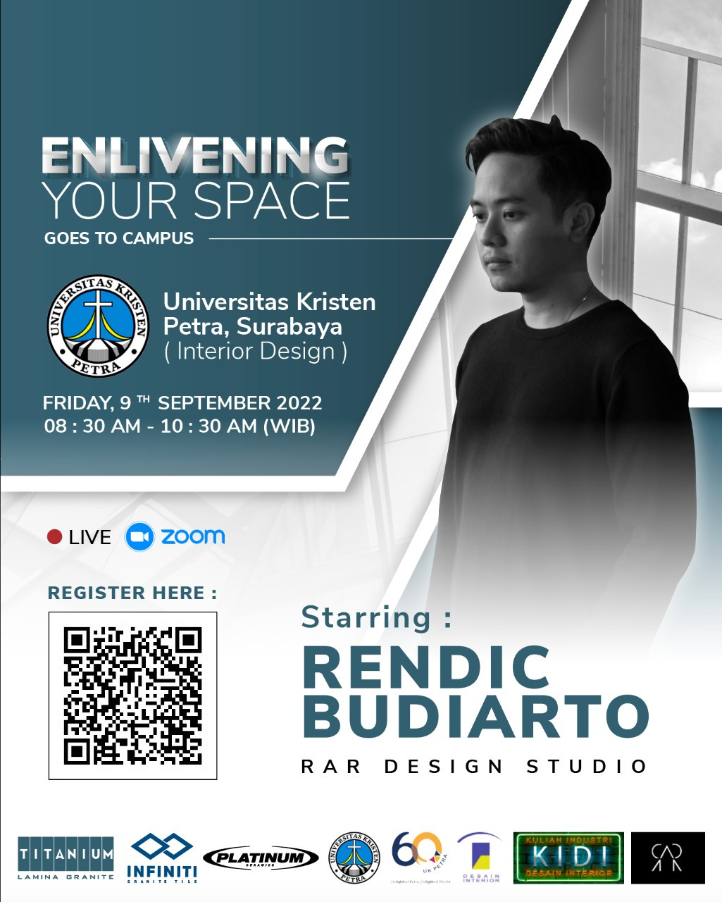 Salah satu rangkaian acara dari KIDI 2022 adalah seminar dengan topik "Enlivening your space goes to campus". Acara ini dihelat pada Jumat, 09 September 2022 jkam 08.30 - 10.30 WIB. Dengan narasumber Rendic Budiarto. Acara ini diselenggarakan secara online melalui aplikasi Zoom.