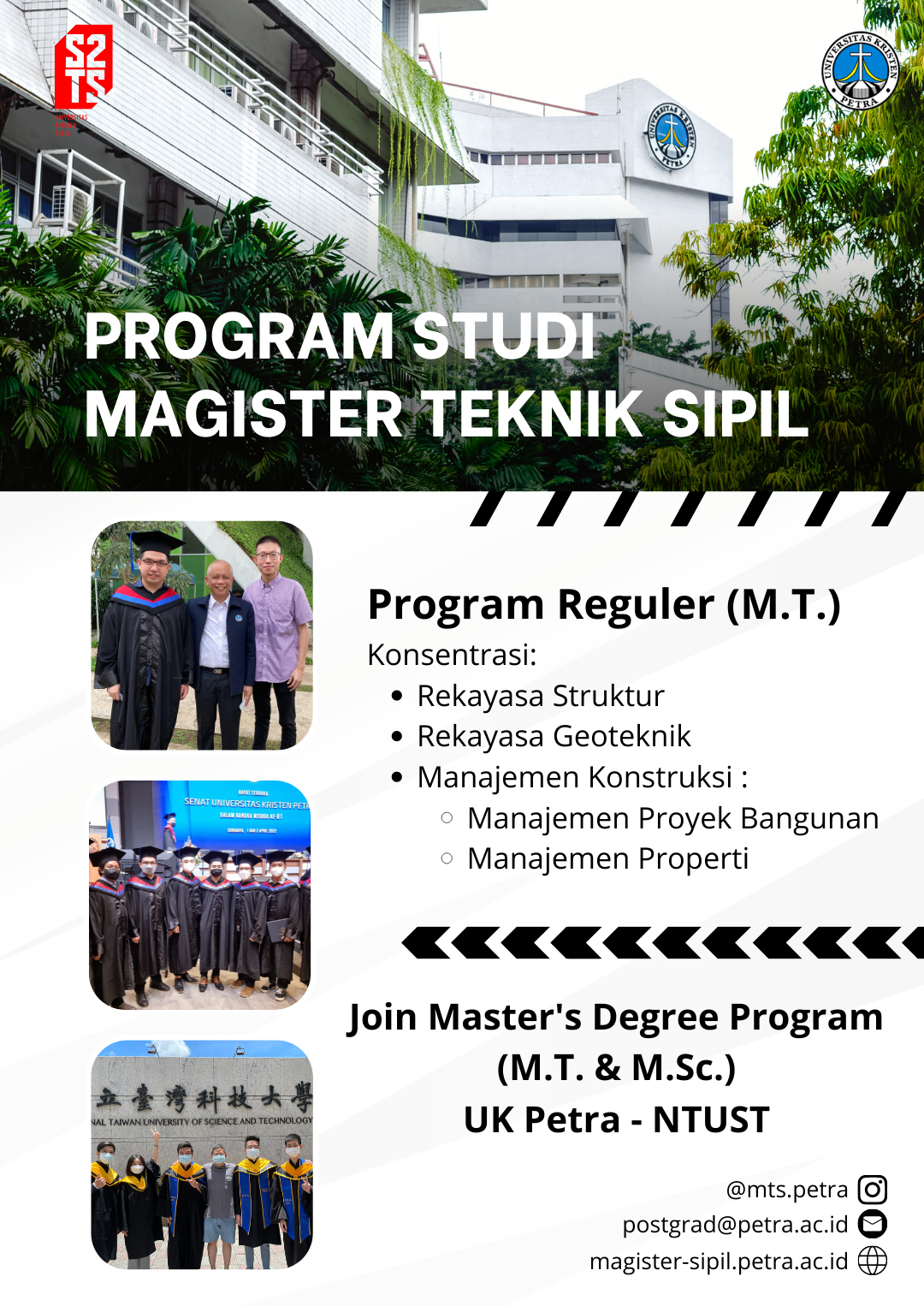 Prodi Magister Teknik Sipil UK Petra membuka pendaftaran mahasiswa baru untuk perkuliahan semester genap 2022/2023 yang dimulai 13 Februari 2023. Pendaftaran dibuka sampai tanggal 27 Januari 2023.