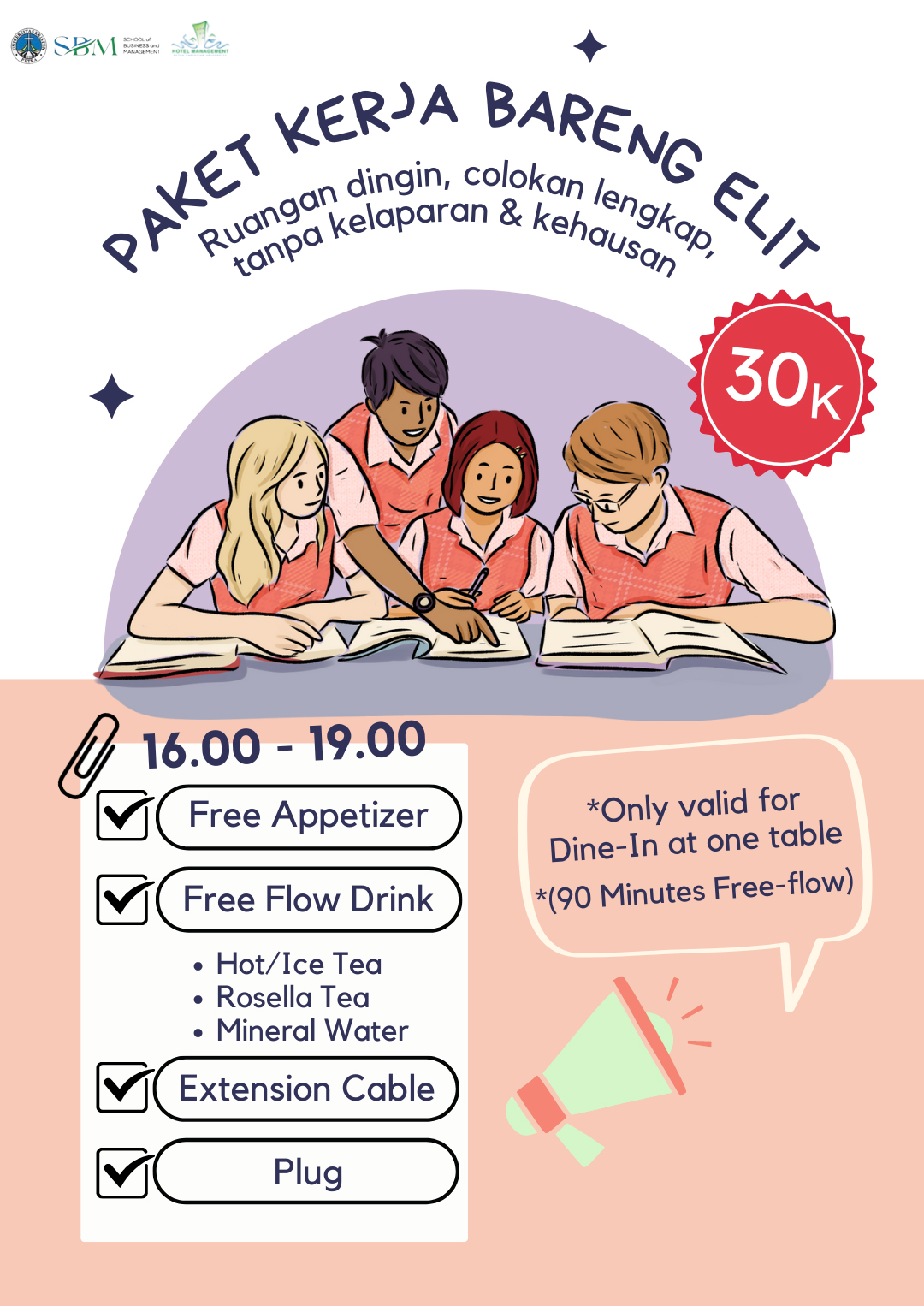 Arkha Resto yang dikelola oleh mahasiswa Manajemen Perhotelan UK Petra, memberikan harga khusus bagi civitas yang mau kerja kelompok di ruang restauran.