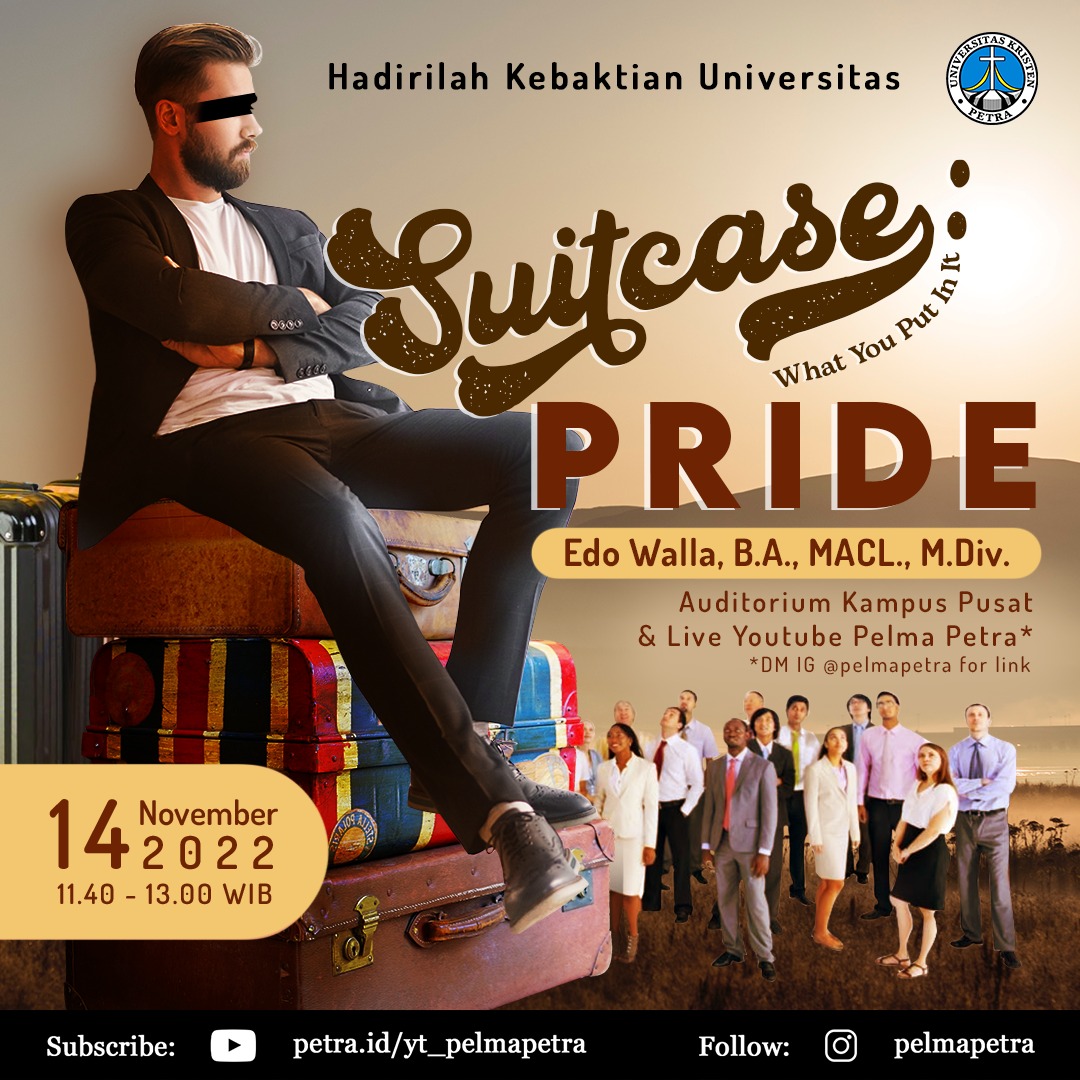 Pada tanggal 14 November 2022, Universitas Kristen Petra mengundang seluruh civitas untuk hadir dalam kebaktian universitas setiap hari Senin. Pada kesempatan ini akan mengangkat tema suitcase what you put in it pride dengan pengkhotbah Edo Walla, M.Div.