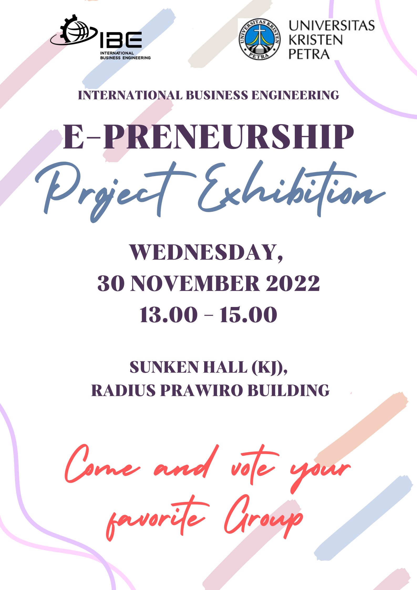 Pada tanggal 30 November 2022 bertempat di Sunken Hall (KJ) gedung Radius Prawiro UK Petra Surabaya, Program International Business Engineering mengadakan pameran project kelas E-Preneurship. Terdiri atas 3 kelompok yang akan menunjukkan hasil ide bisnis mereka.