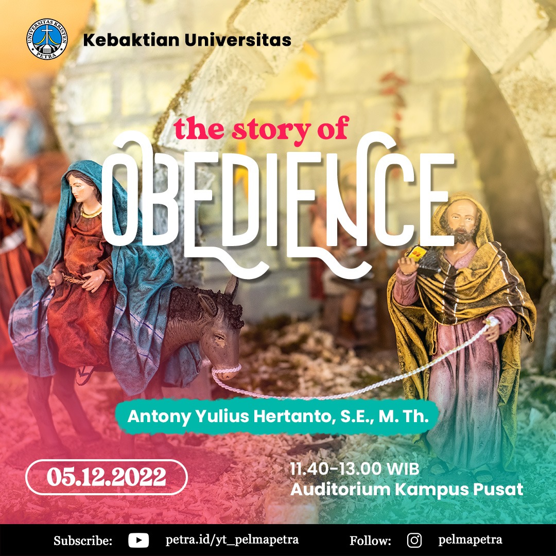 Kebaktian Universitas dengan tema The Story of Obedience diadakan pada tanggal 05 Desember 2022 bertempat di Auditorium kampus pusat. Mengangkat topik The Story of Obedience menghadirkan bapak Antony Yulius Hertanto, S.E., M.Th. sebagai pengkhotbah.