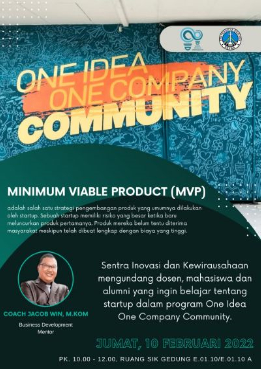 Jumat, 10 Februari 2023, jam 10.00 - 12.00 WIB. Lembaga Penelitian dan Pengabdian Masyarakat UK Petra mengadakan pelatihan dengan tema "One Idea One Company Community" dengan narasumber Jacob Win, M.Kom