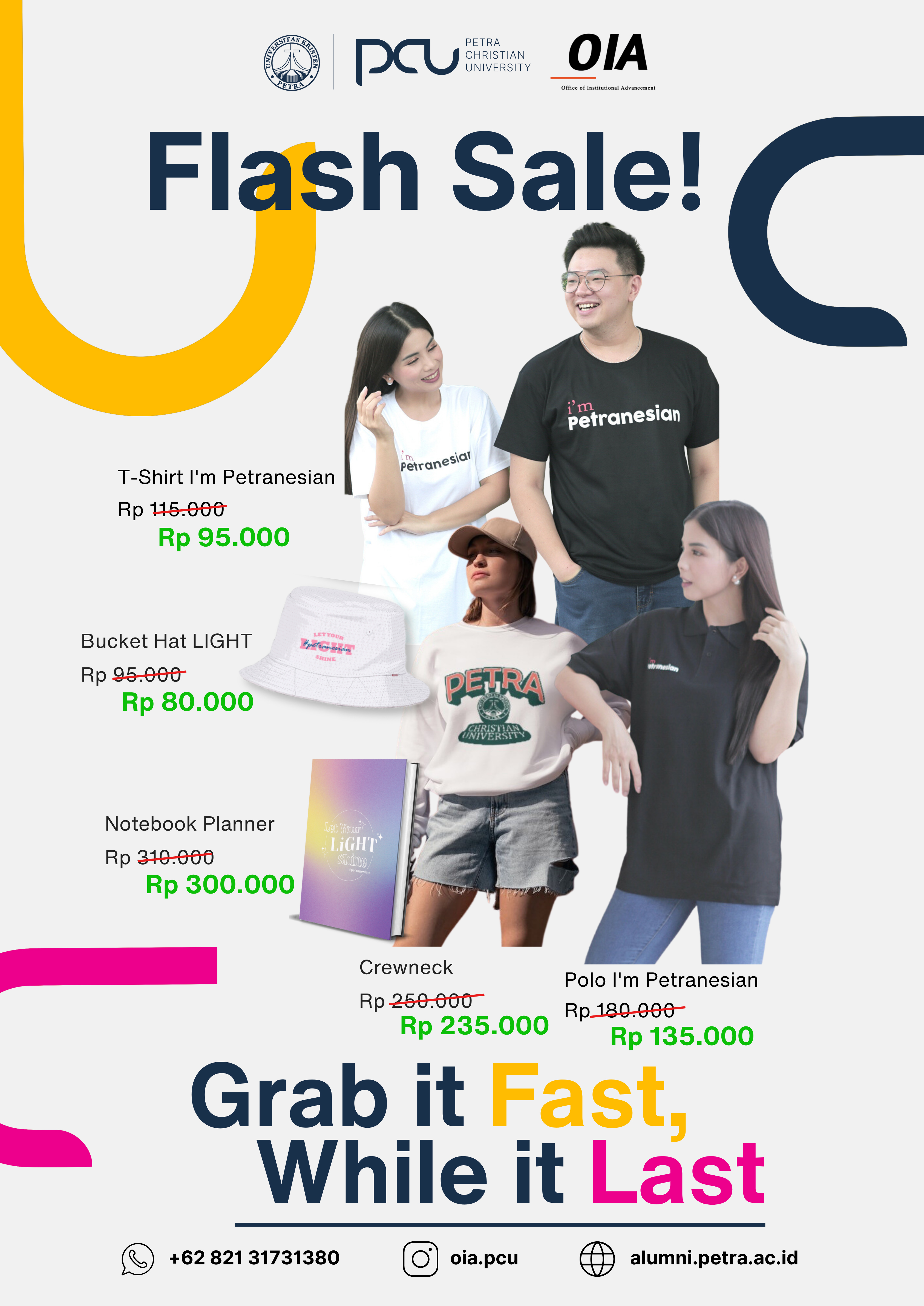 OIA Universitas Kristen Petra Surabaya memberikan diskon spesial untuk produk tertentu dari petranesian merchandise.Diskon diberikan hingga tanggal 31 Mei 2023.