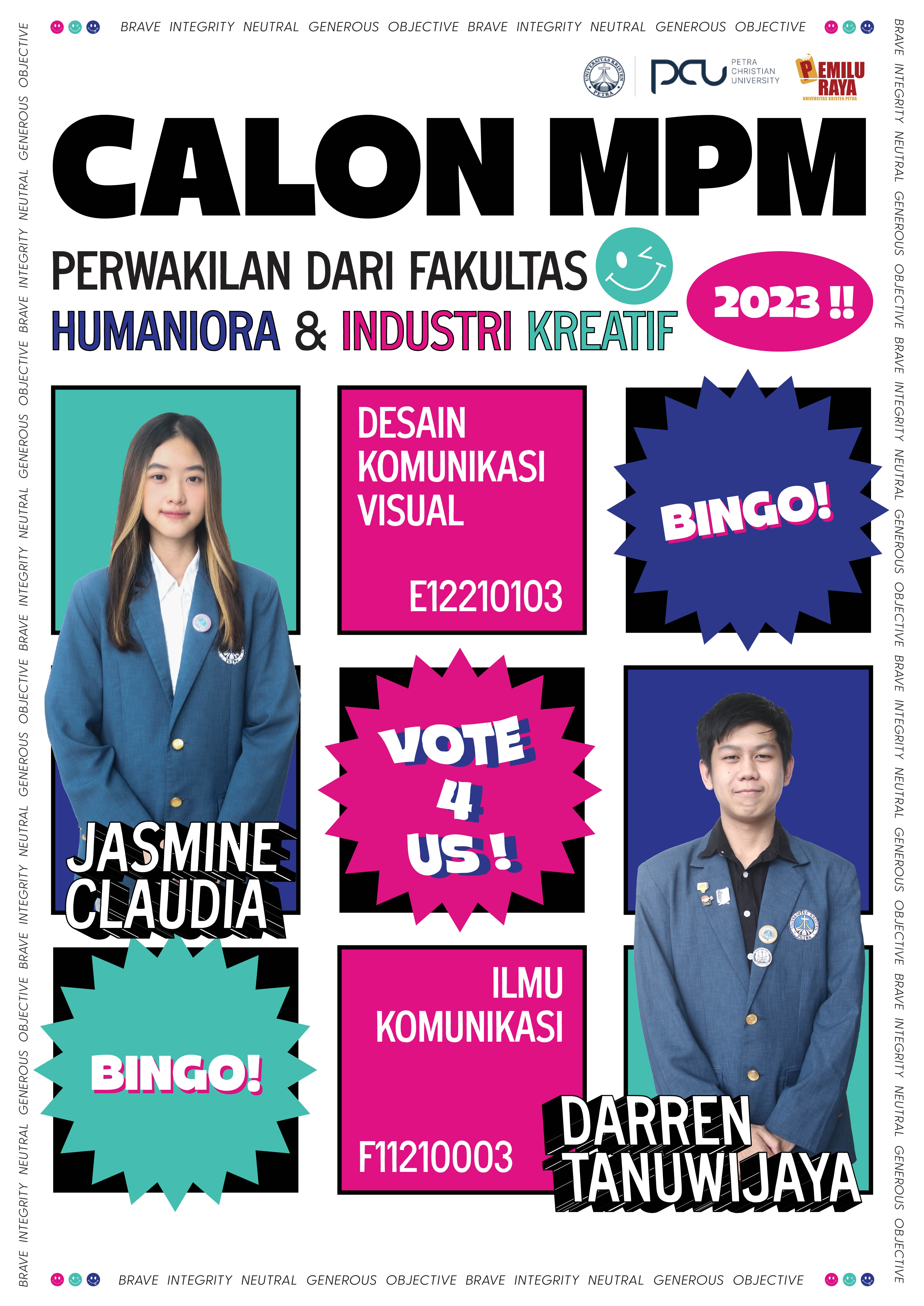 Voting untuk calon MPM Fakultas Humaniora dan Industri Kreatif PCU. Untuk itu FHIK mengajak mahasiswa ikut berpartisipasi memberikan pilihan mereka pada saat hari pelaksanaan pemungutan suara.