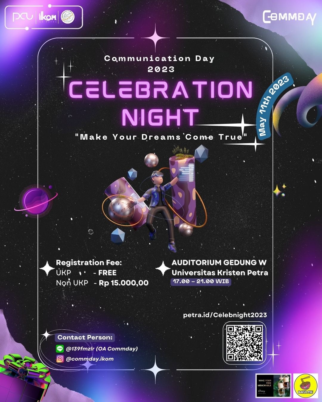 Celebration Night adalah puncak selebrasi rangkaian acara Communication Day 2023. Tahun ini Celebration Night mengangkat tema "Make Your Dreams Come True" dengan harapan agar di tahun ini banyak mahasiswa maupun alumni dari Ilmu Komunikasi UKP bisa meraih mimpi mereka. Akan ada banyak performance dari dosen dan mahasiswa Ilmu Komunikasi UKP, serta drama besar yang diperankan oleh mahasiswa. Ada penampilan lainnya yaitu pemenang CTF, band, dan performa lainnya. Kegiatan ini dilaksanakan pada 11 Mei 2023 jam 17.00 - 21.00 WIB bertempat di Auditorium kampus pusat.