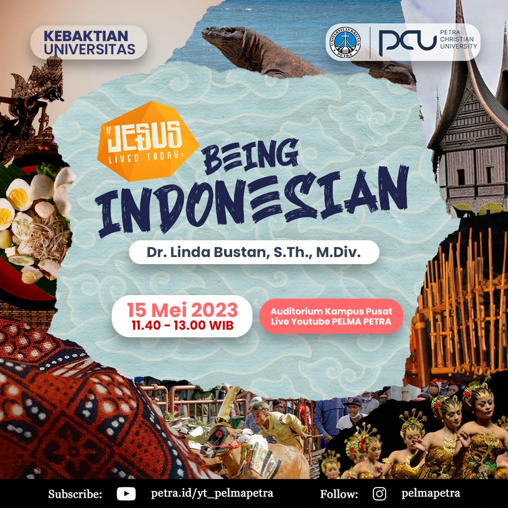 Universitas Kristen Petra Surabaya mengundang seluruh sivitas UK Petra untuk hadir dalam Kebaktian Universitas yang diadakan setiap hari Senin, jam 11.30 - 13.00 WIB. Pada tanggal 15 Mei 2023 kali ini kebaktian mengambil tema "if jesus live today being Indonesia" dengan pengkhotbah ibu Linda Bustan, S.Th., M.Div.
